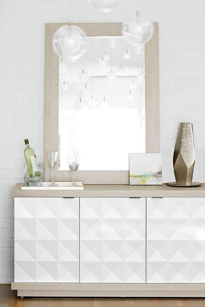 - Four doors with cast shaped overlays in White Linen finish with soft/self-closing hinges