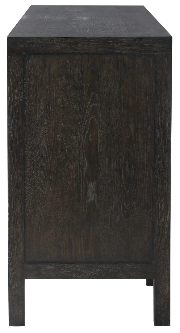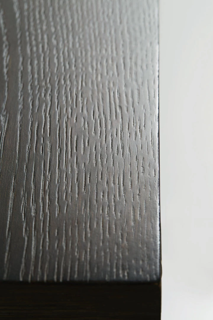- Quartered sandblasted oak veneers in Black Truffle finish