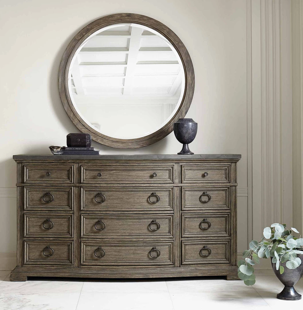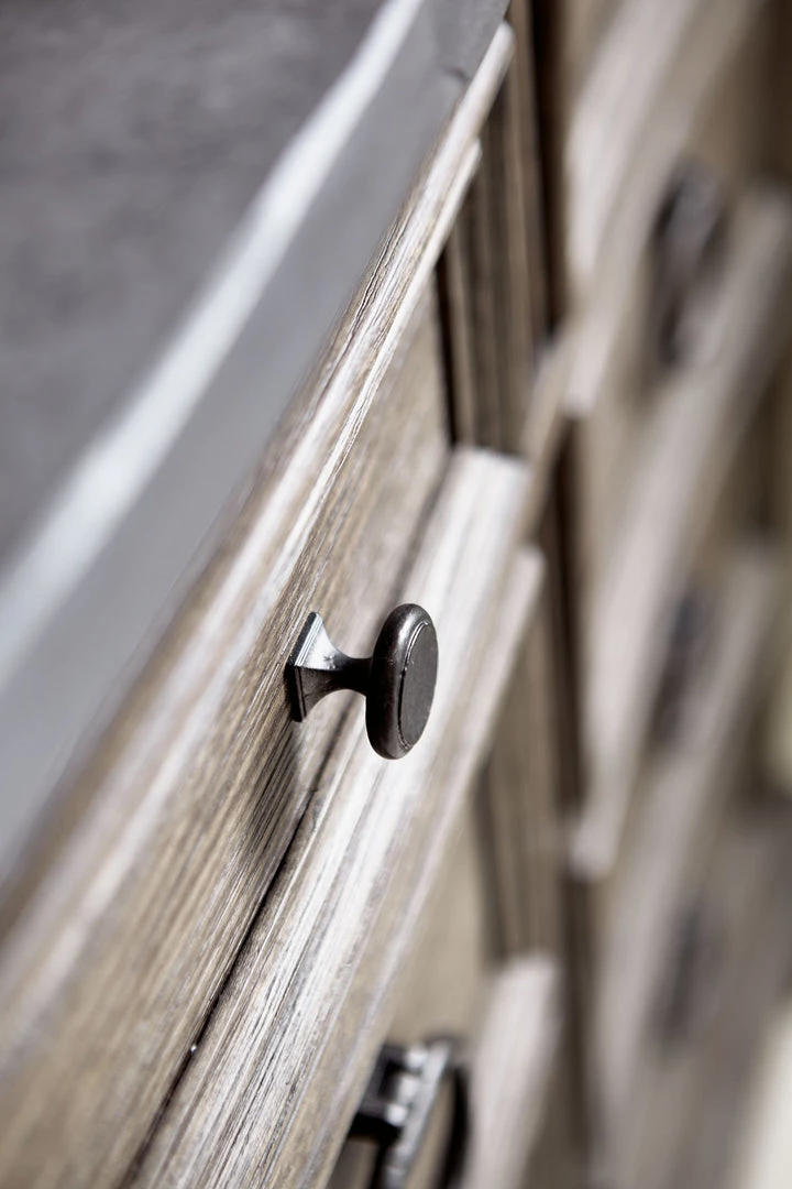 - Wire-brushed in Desert Taupe finish