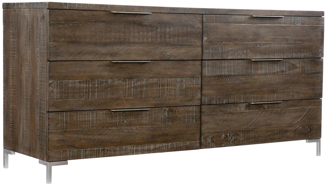 - Six drawers with metal tab pulls