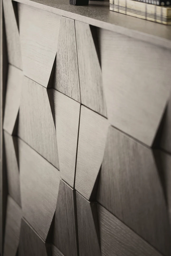 - Five push-to-open doors with dimensional fancy face door fronts