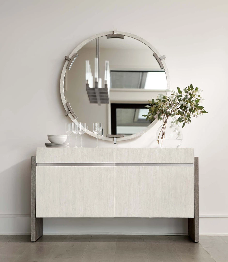 - Two-tone finish – Case in Linen finish and end panels in Light Shale finish