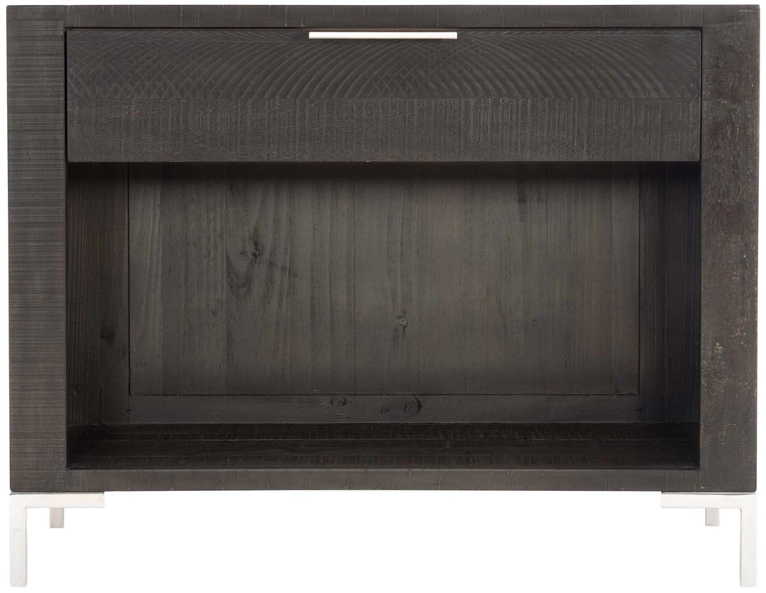 - One drawer with metal tab pull