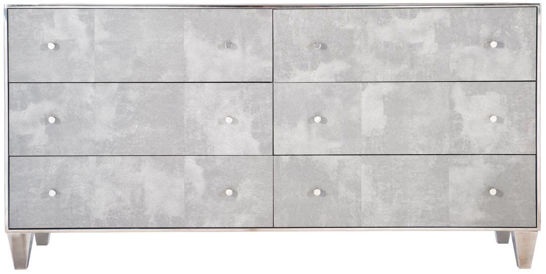 - Inset Gray faux vellum panels on top, side panels and drawer fronts