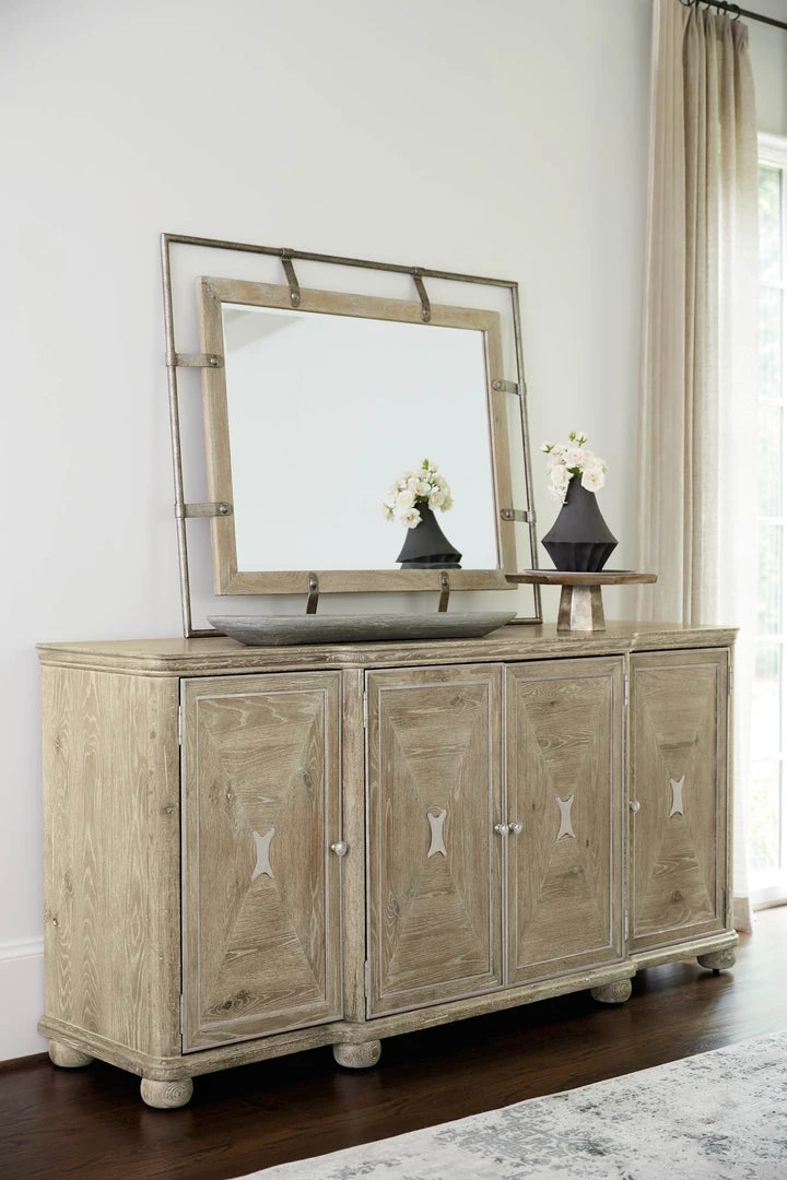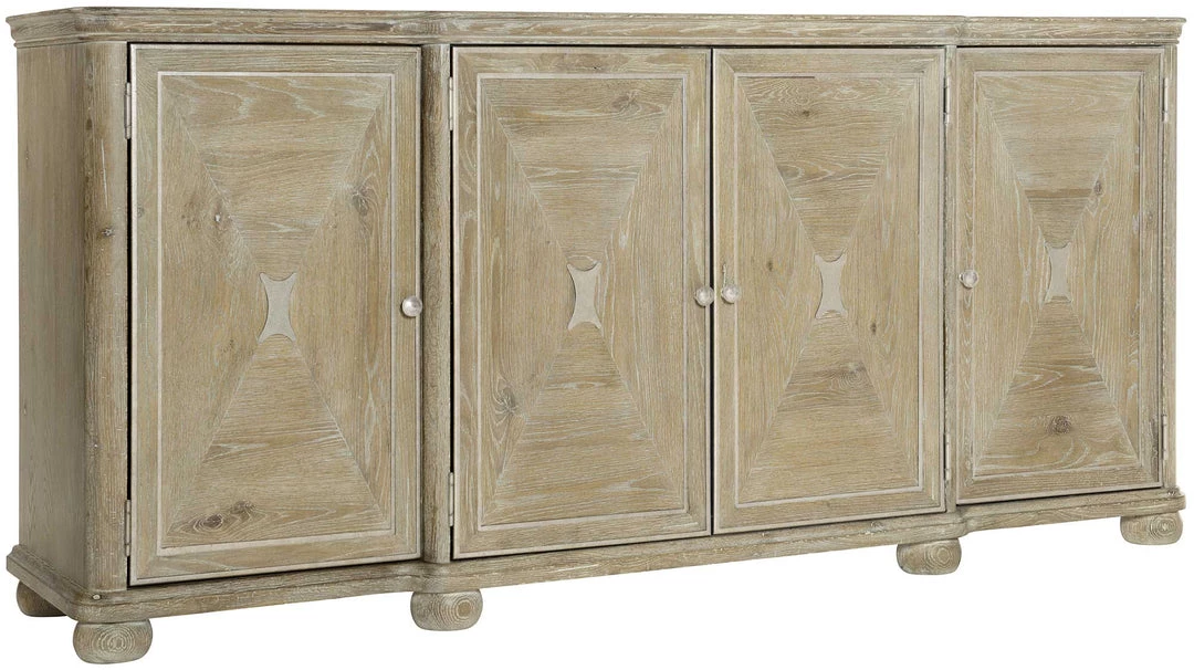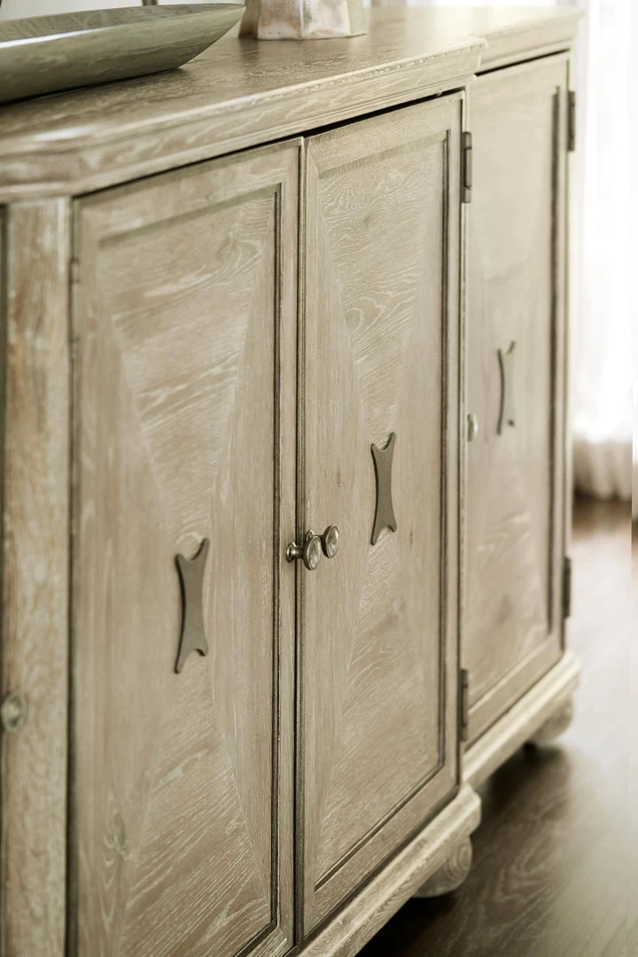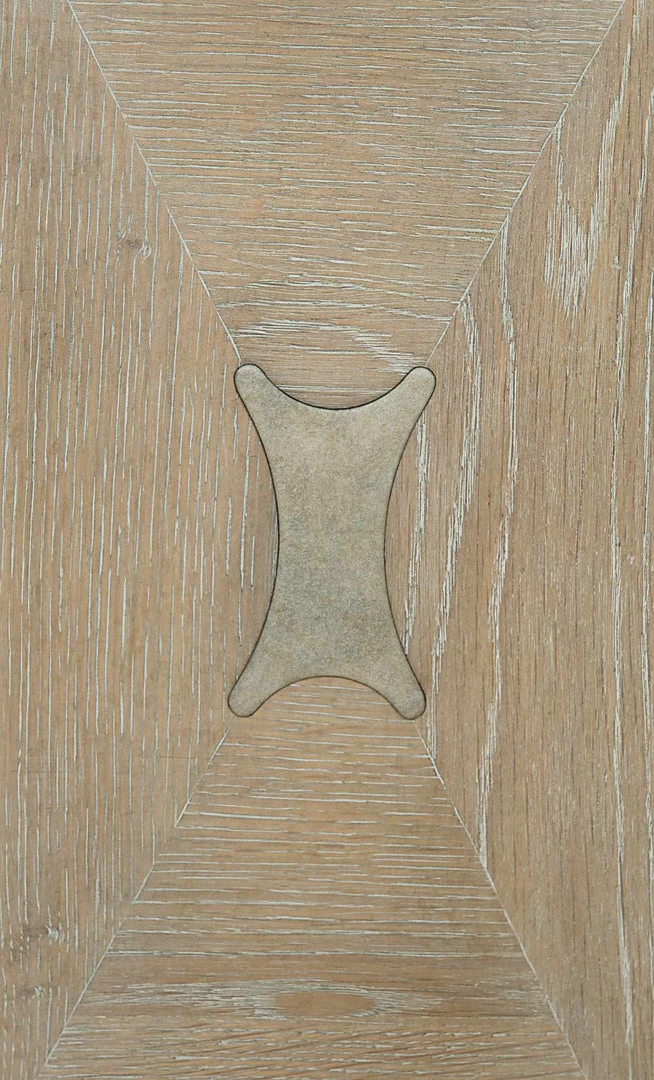 - Four fancy face doors, each with inset inner and outer metal frame and center metal accent overlay