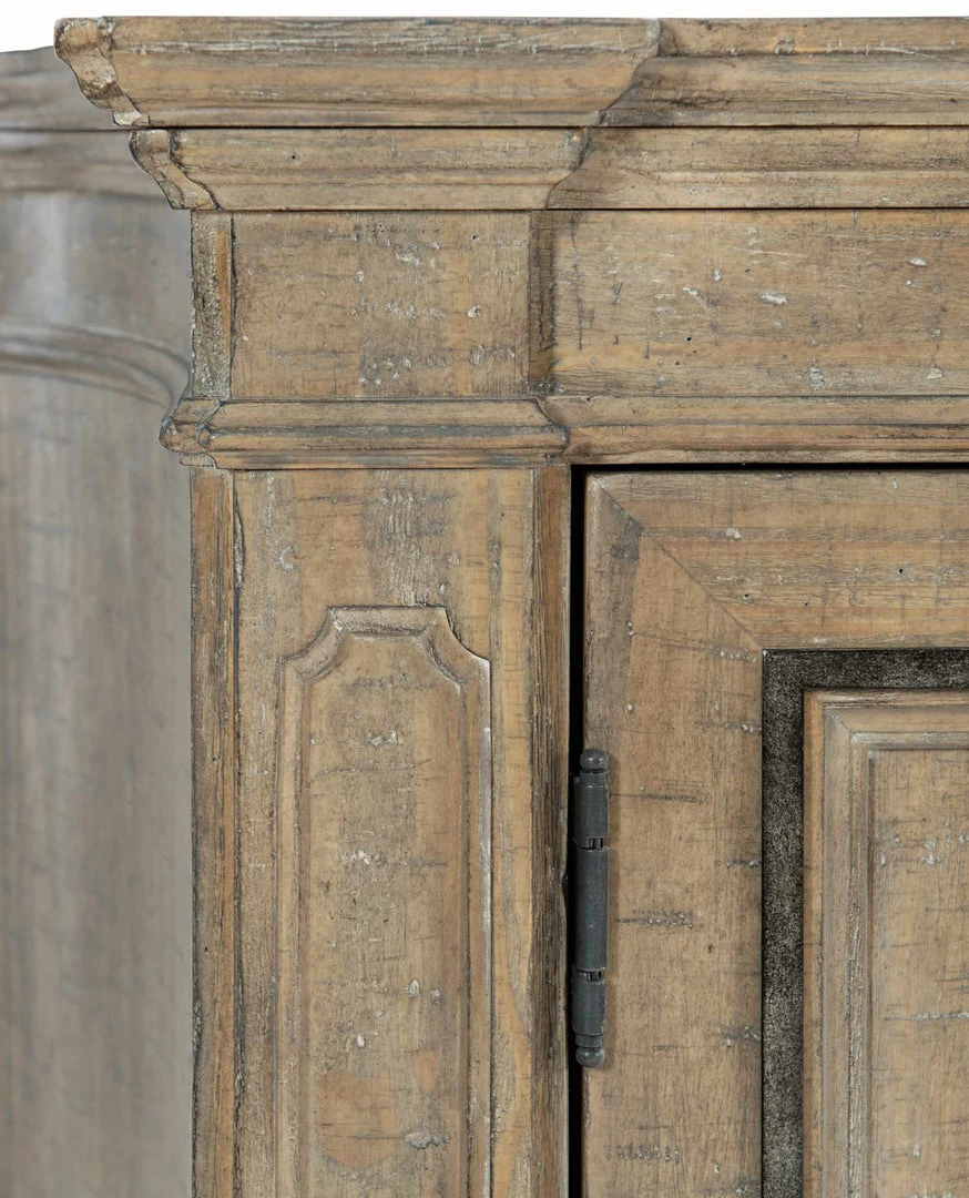 - Behind end doors are two adjustable/removable shelves, ventilation holes, one grommet hole with cover in back panel and fixed bottom shelf surface