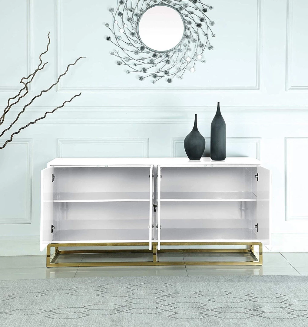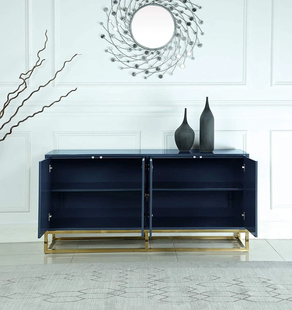 This stunning sideboard with diamond patterns and gold plated legs would be a great addition to any home. Use it for storage, food plating, or even as a sleek statement making piece in your home.