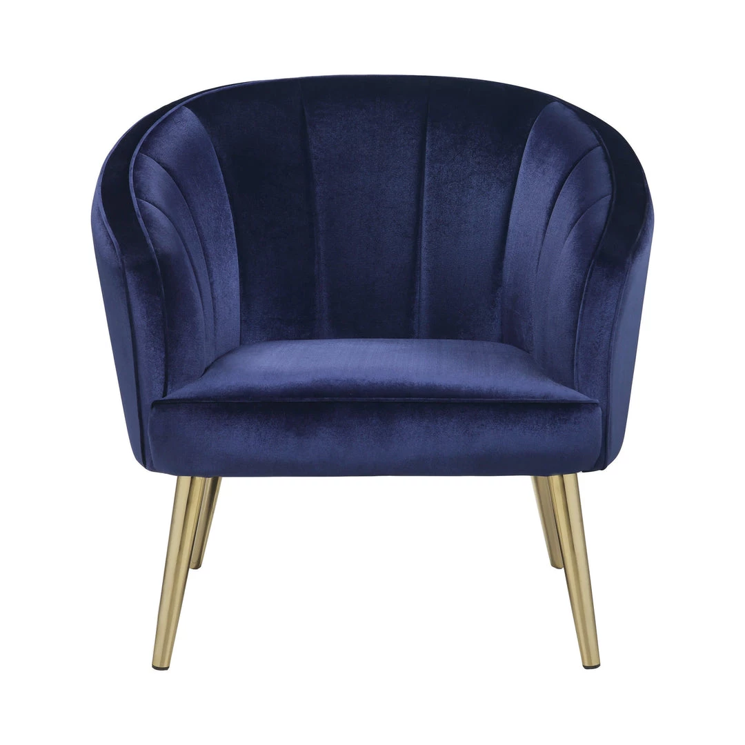 If your big gatherings frequently attract more guests than you have available seats, then consider this velvet accent armchair. The polyester-filled cushion and back are plush enough to ensure hours of chatting comfortably. It also includes stylish channeling details that add a subtle allure. The four angled legs add to the deluxe look with their brilliantly brass finish. In addition to navy, this handsome accent chair also comes in black velvet finish.