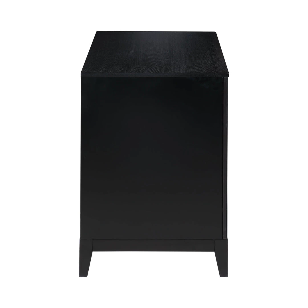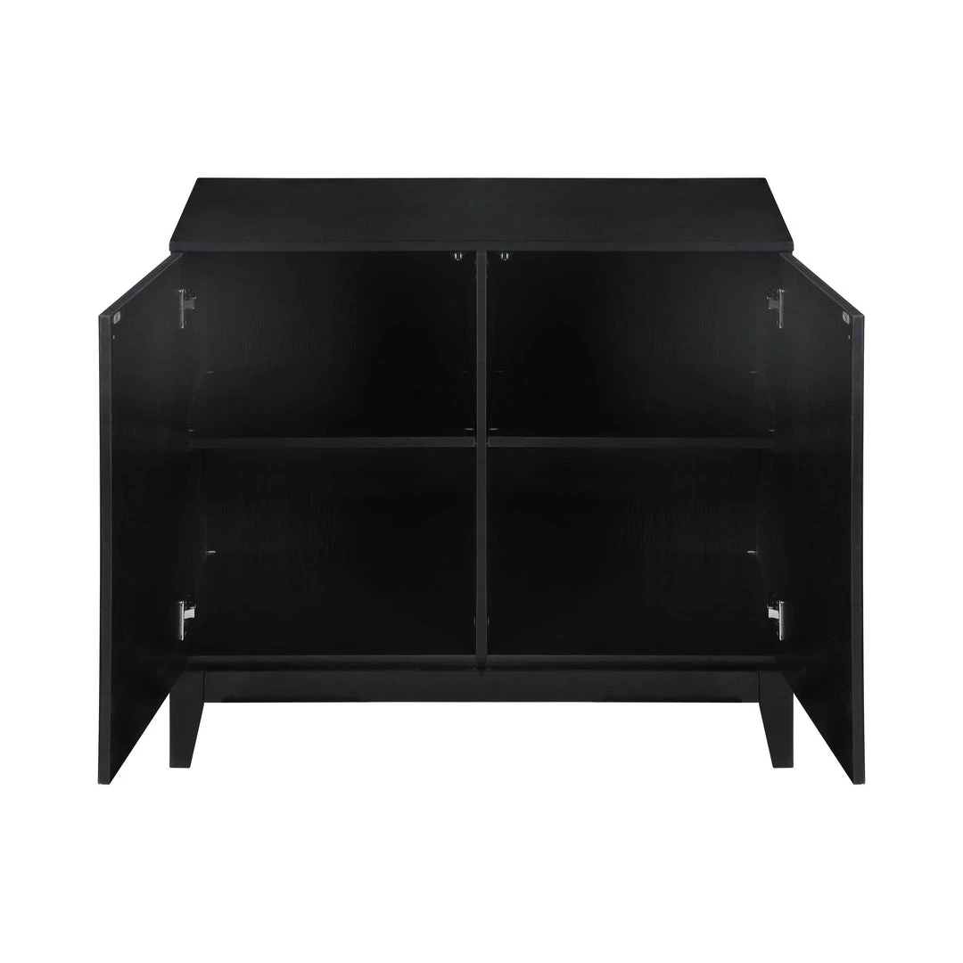 Mirrored doors enhance a glamorous dining space to perfection. This two-door server is a versatile addition, offering storage and display space for entertaining and everyday living. The server features two mirrored doors with bubble-inspired accents that bring a hint of geometric flair to any dining room. The bubbles feature a champagne gold finish that provides just the right touch of contrast and dimensionality. The case features a crisp black finish that blends into transitional or contemporary decor.