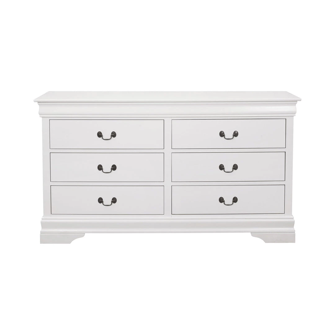 Organize and store your belongings out of sight with this gorgeous six-drawer chest. Felt-lined drawers offer ample storage space for clothing, blankets, slippers, and more. Kenlin glides allow for smooth, easy functionality. A simple silhouette accents this already beautiful piece. The clean lines and rich, white finish of this stunning dresser add a sense of traditional style to your guest room or master suite.