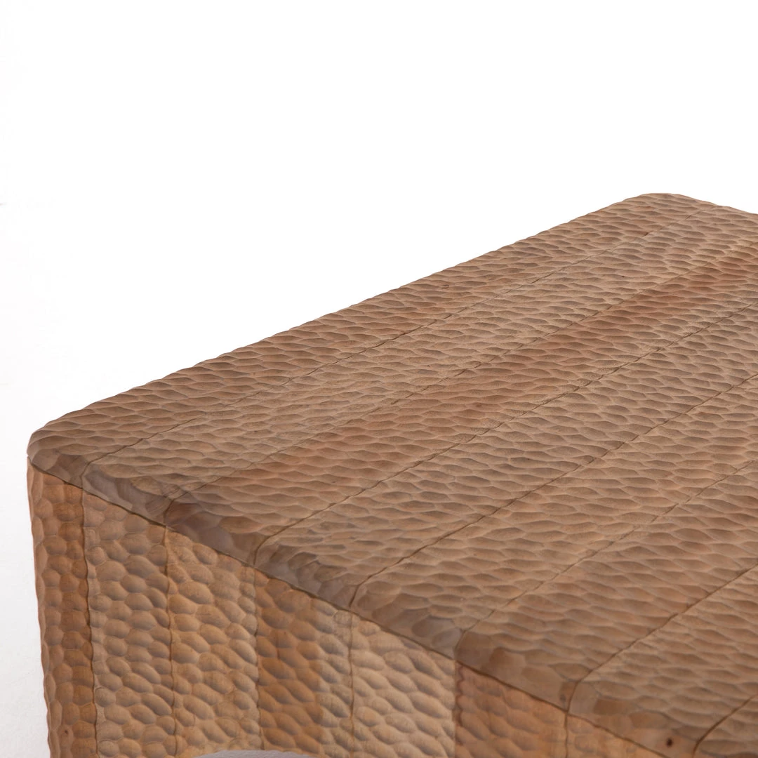 Inspired by rare 18th-century sake flasks, solid mahogany is thoughtfully hand carved, creating a textural, dimple-like look with warm, sun-bleached undertones. Unique variations to be expected, and speak to this piece’s handmade nature.