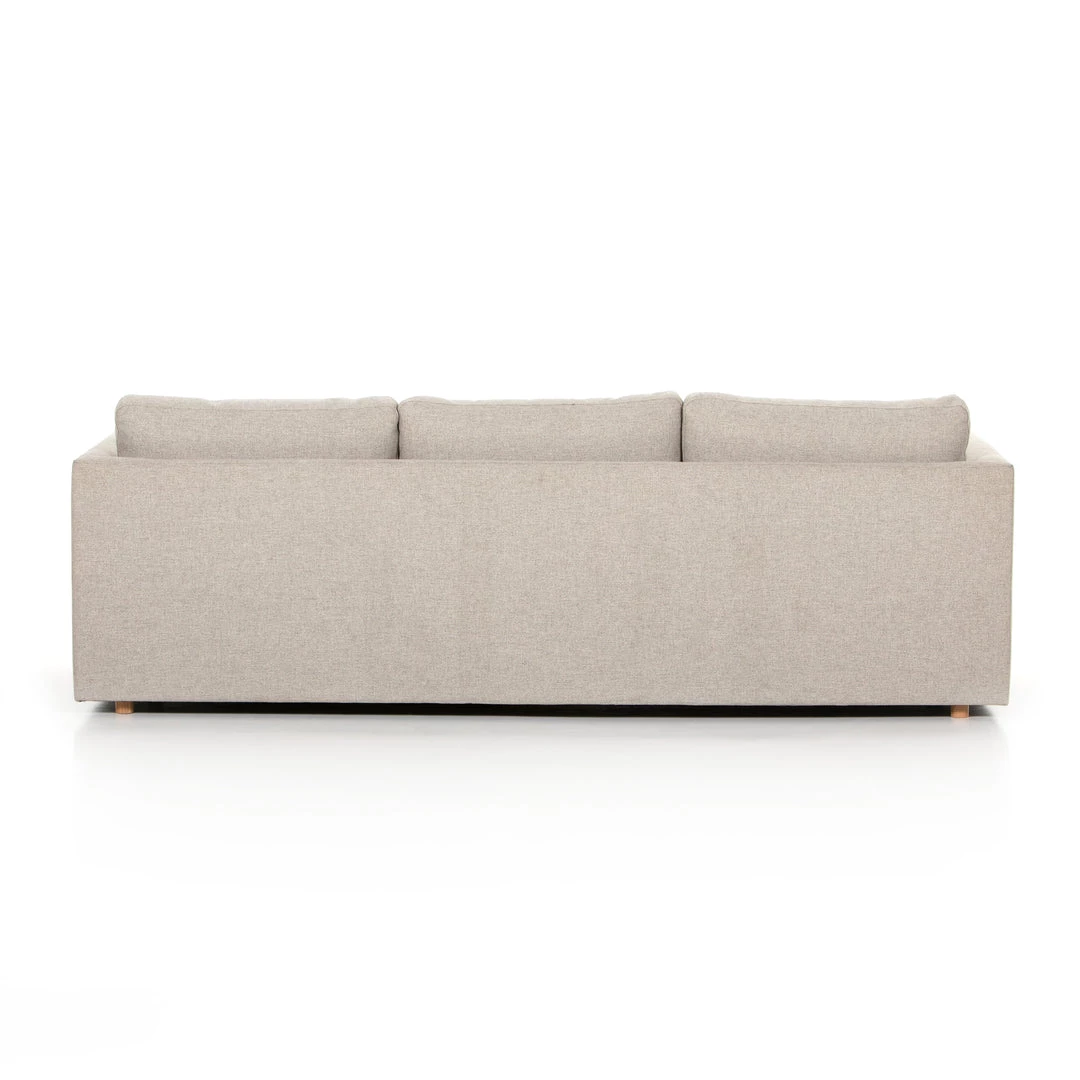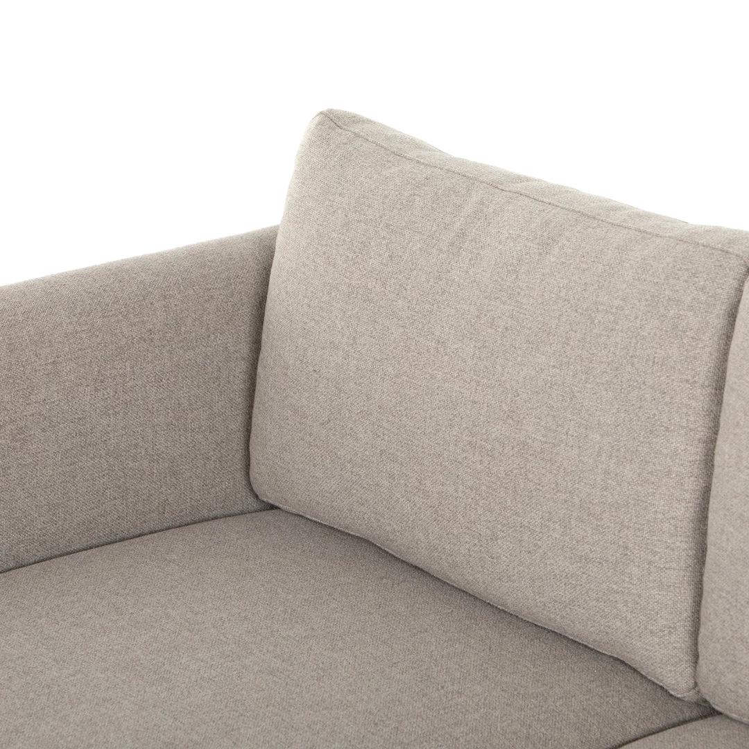 Clean lines for a classically transitional look. Solid oak forms a low-profile frame for traditional sofa seating in an inviting neutral grey, for a chic look with elevated comfort.