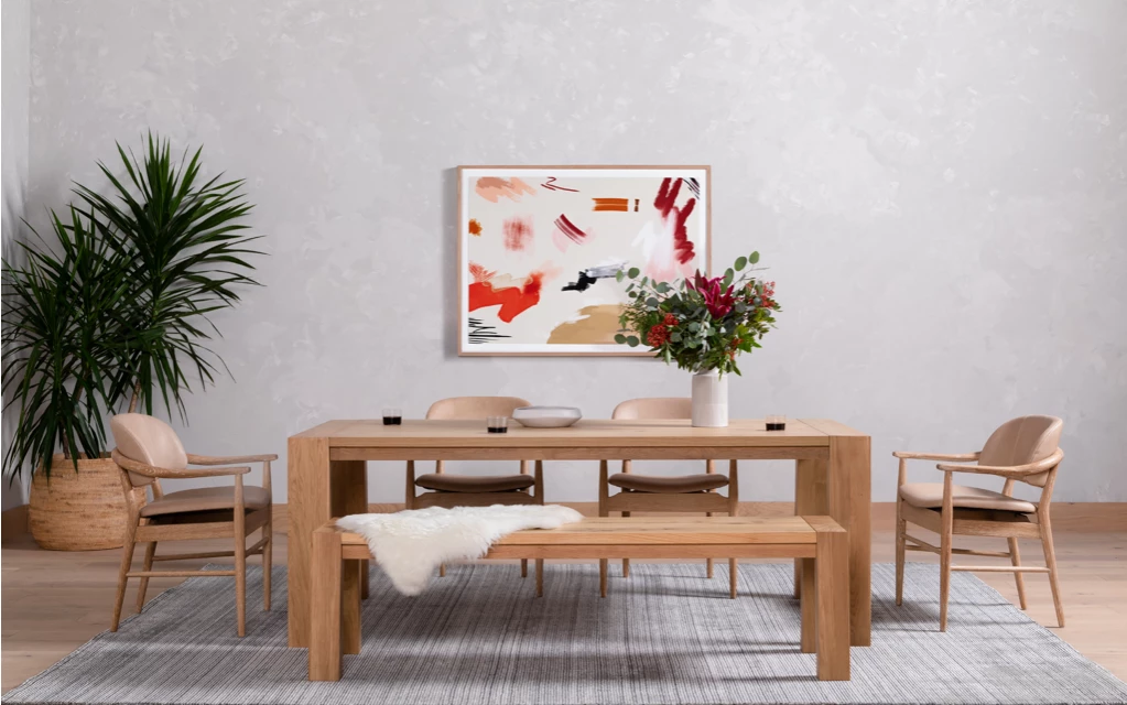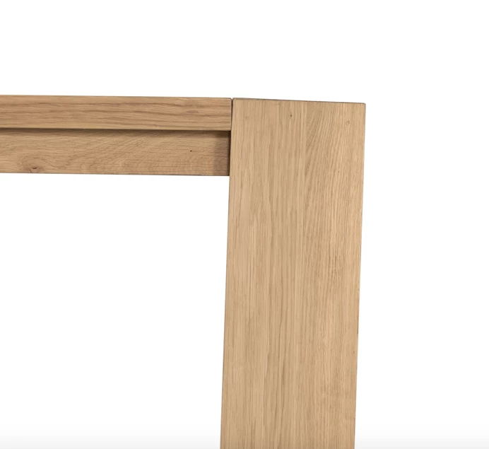 The classic Parsons frame, reimagined for a new era. Made from light-smoked oak, a large scale and wide stance command attention from the start, while black resin fills in woods’ cracks and graining to further play up materials’ natural beauty. Option to pair with matching dining bench.