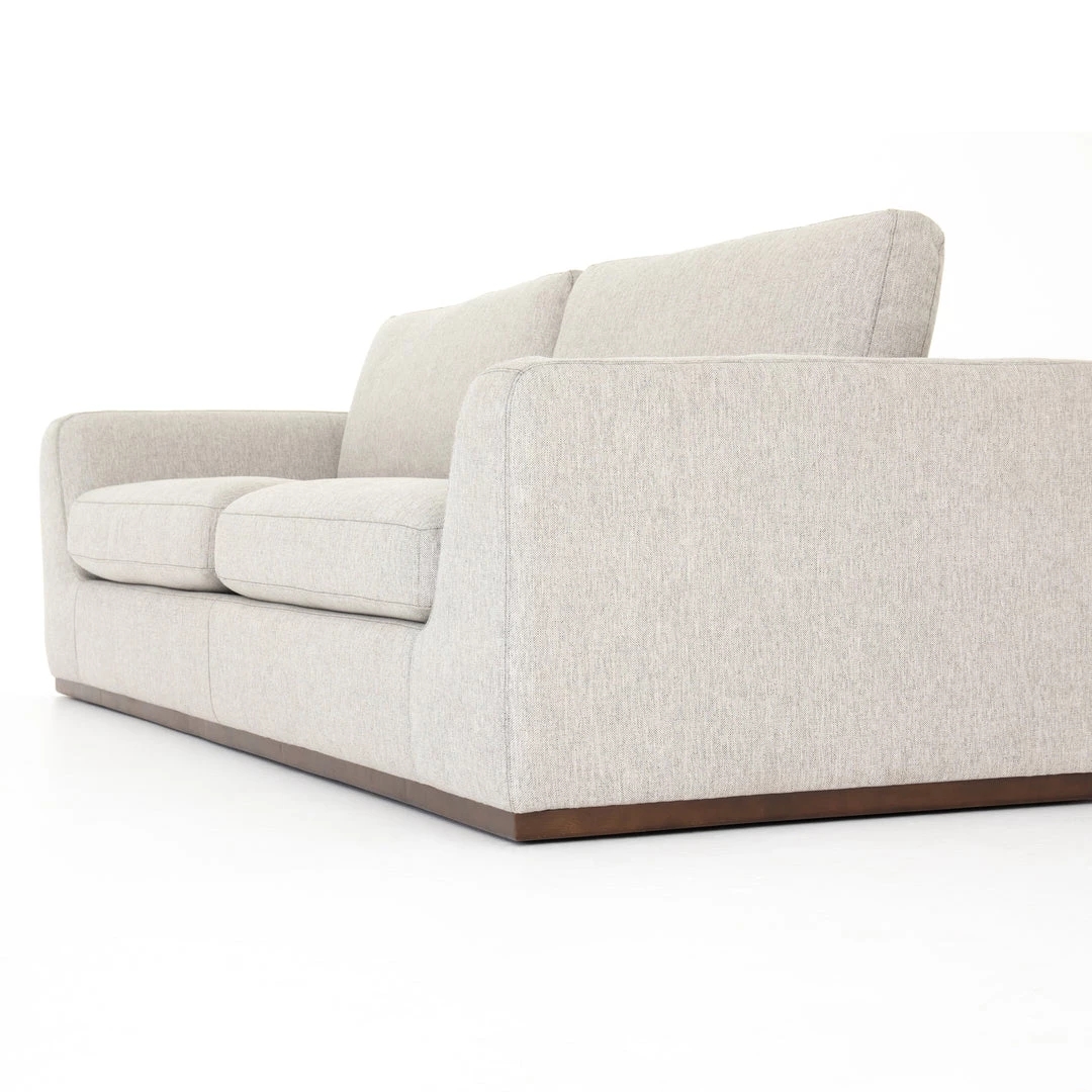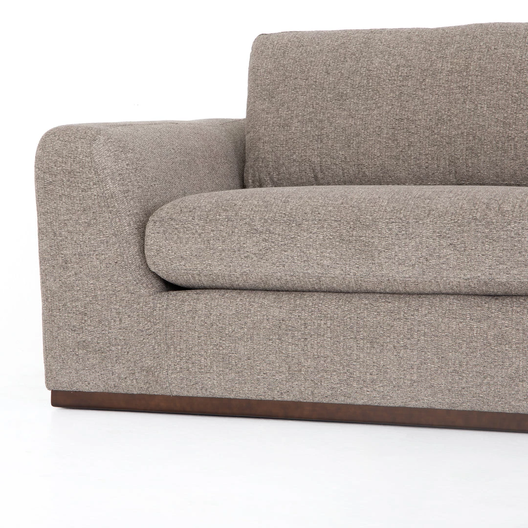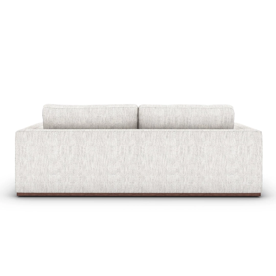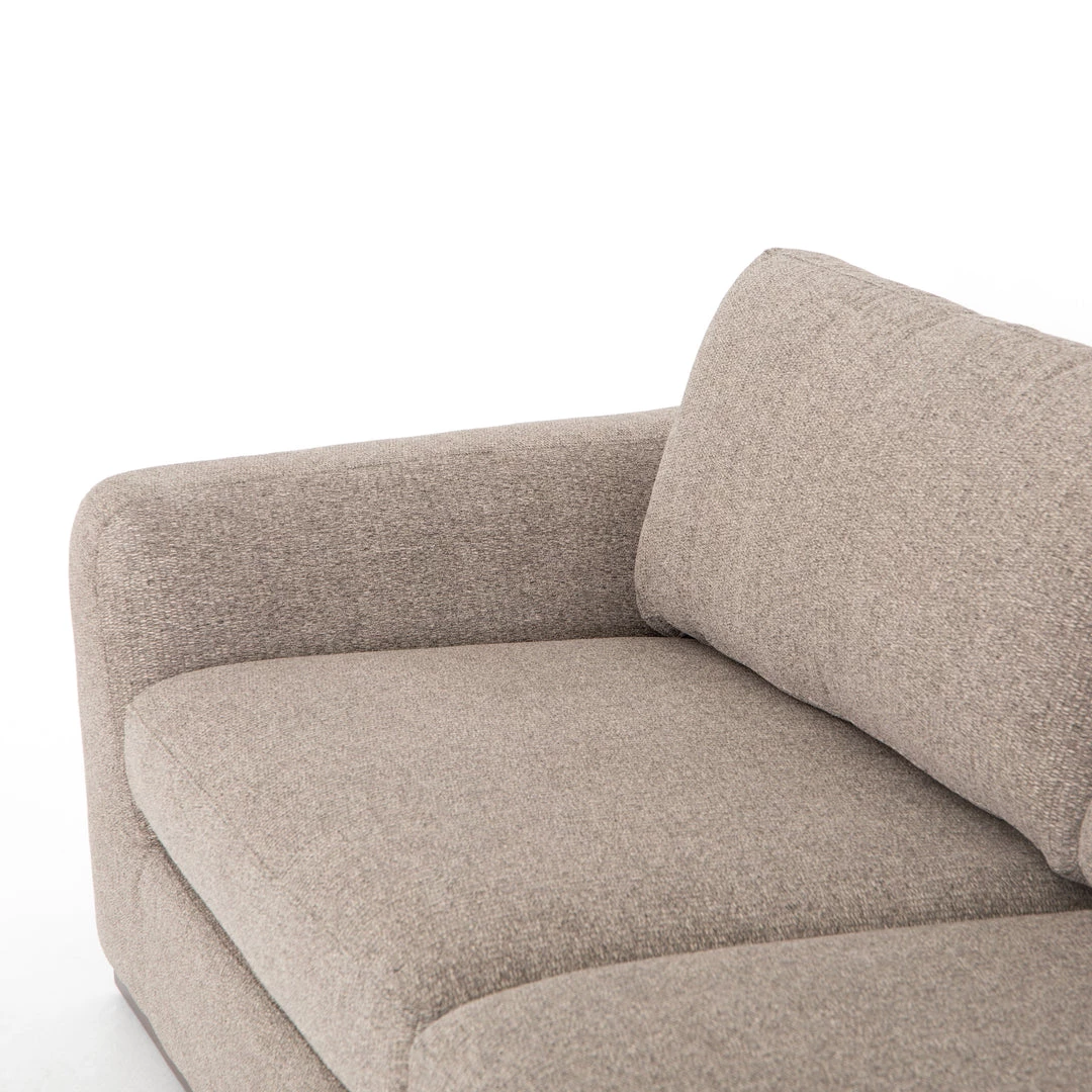 Simply styled for everyday lounging. A textural poly/linen blend covering adopts a neutral off-white hue, while subtly flared sides for shapely effect.