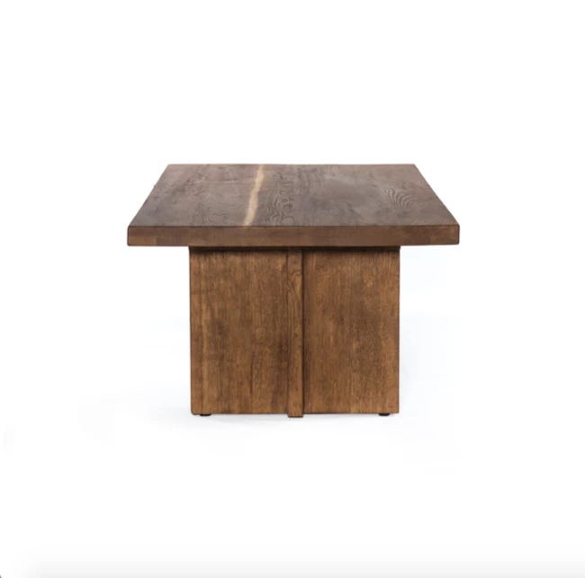Dark-smoked oak forms clean, structured lines, crafting the finest of coffee tables with rustic, ombre-evocative undertones. Streak-like highlights are common, and speak to woods which have been specially selected for their unique natural patterns and graining. A subtle variance in color and pattern is to be expected from piece to piece, and is reflective of materials’ organic sourcing.