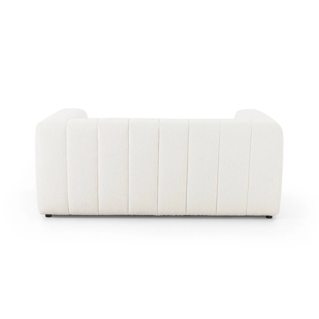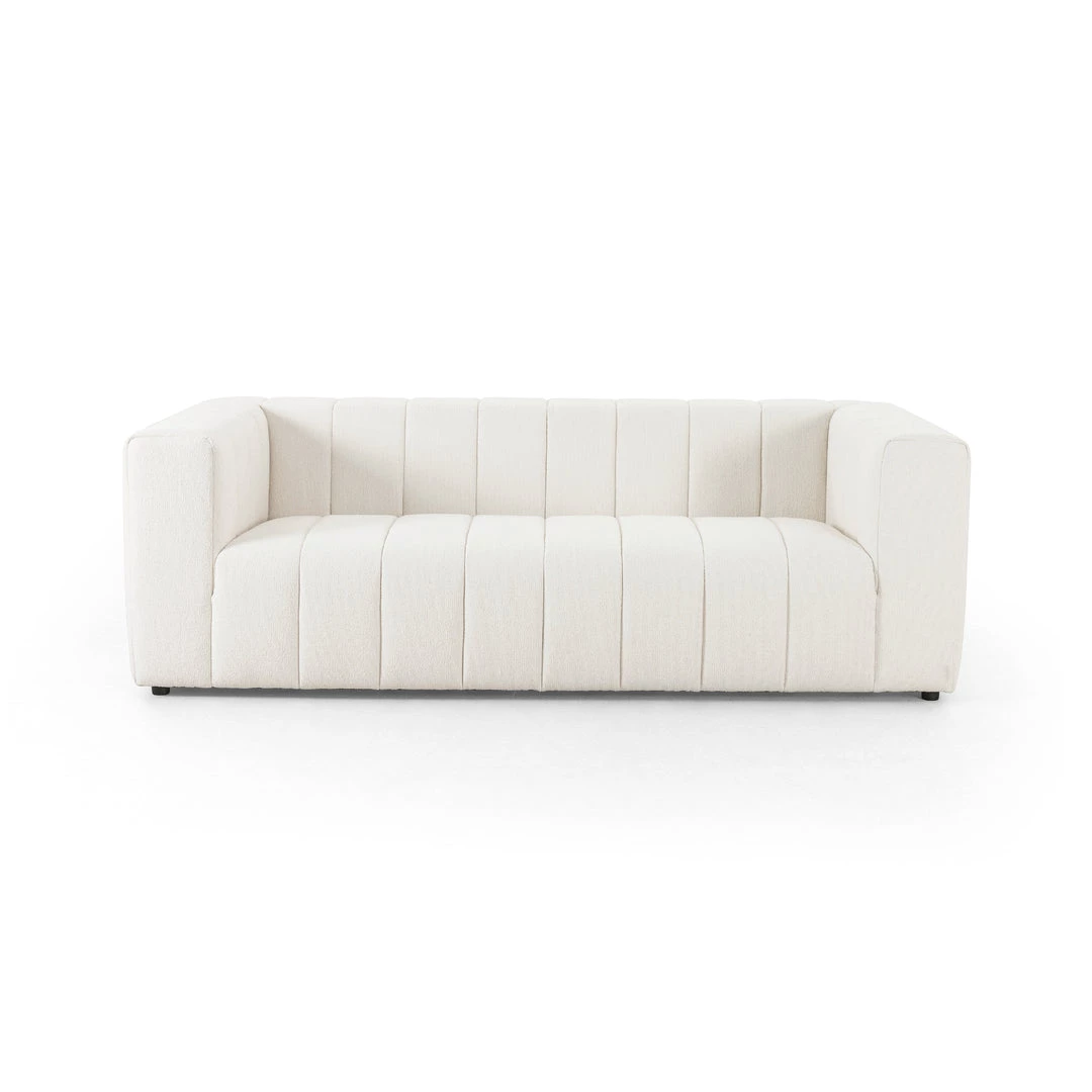 Wide, vertical channeling and low styling speak to the modish Italian influence of this sofa. Upholstered in a pristinely tailored high-performance fabric that feels like a blend of linen and boucle.