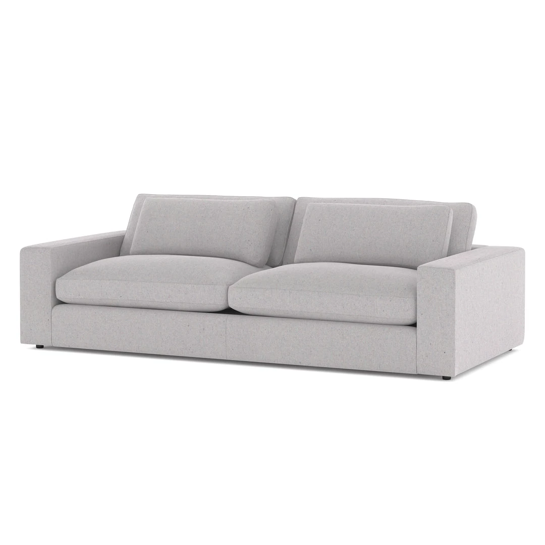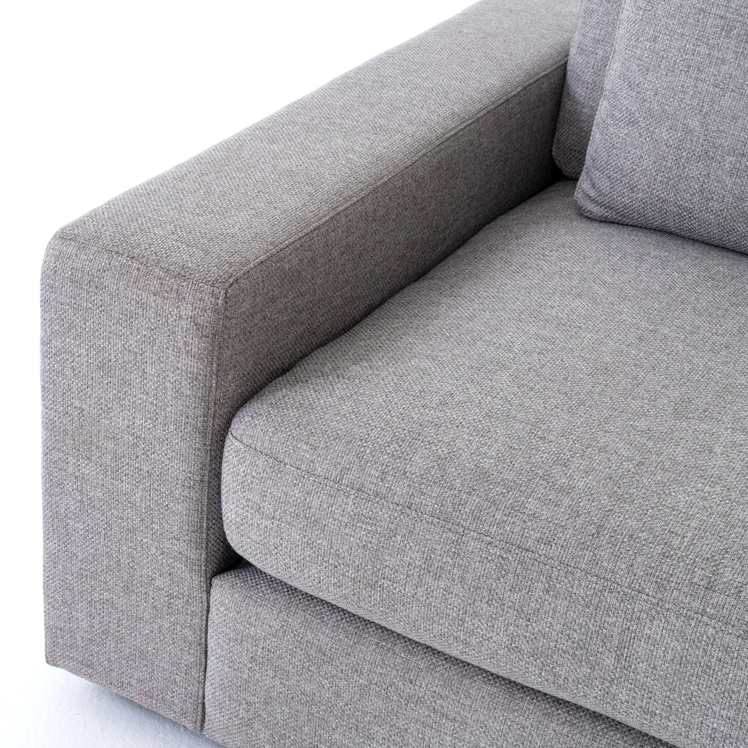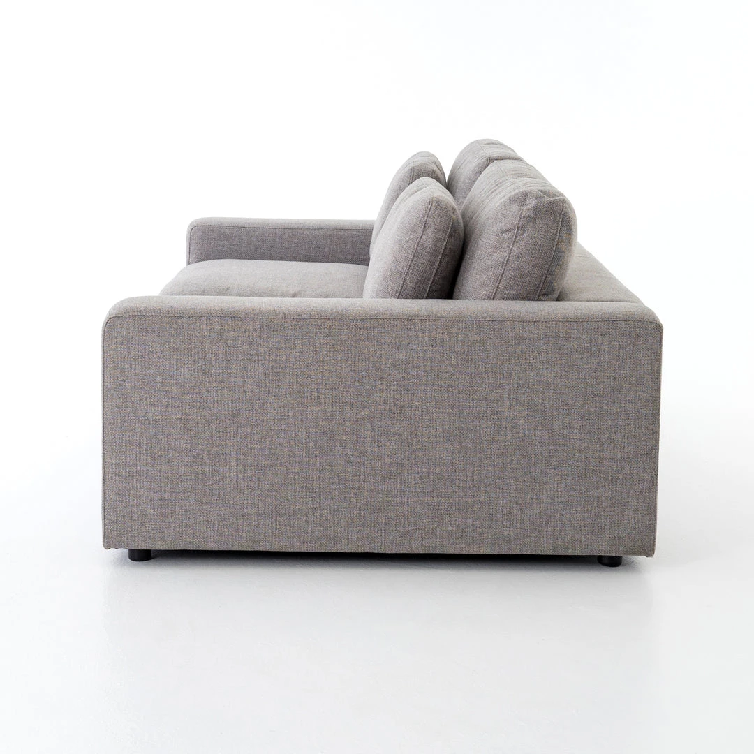 Deep, modern and seductive. This dramatic, spacious sofa is covered in a sleek, neutral grey fabric that mixes well with any color palette.