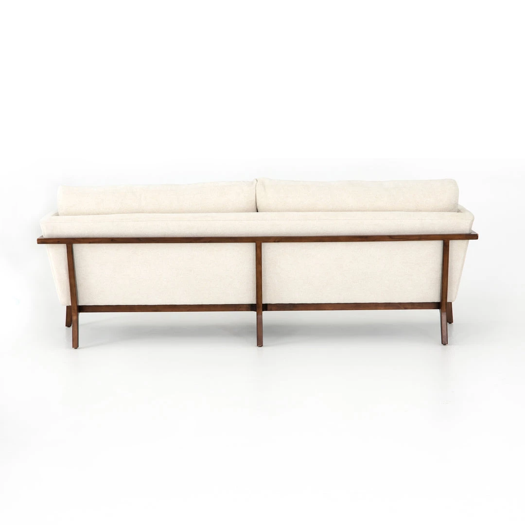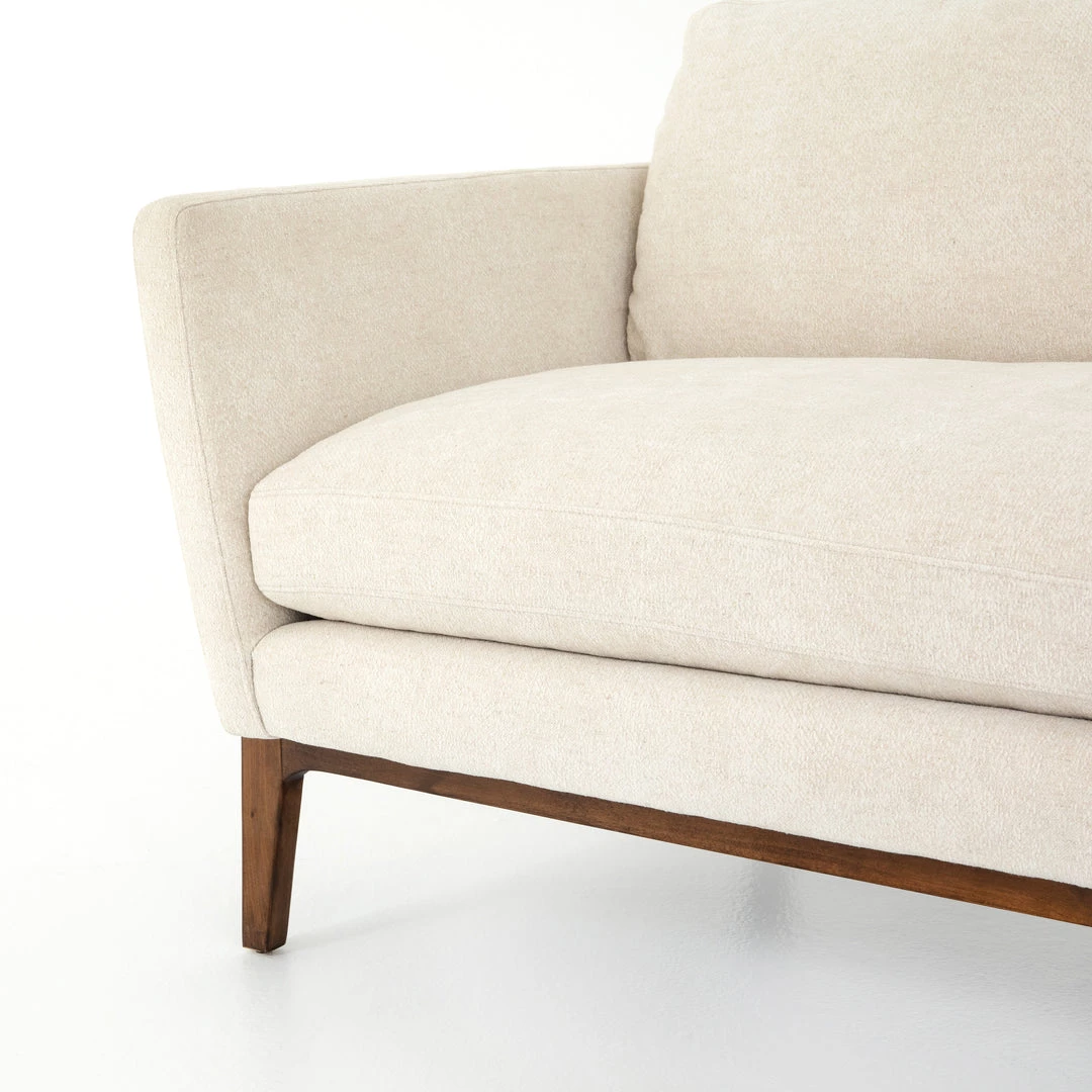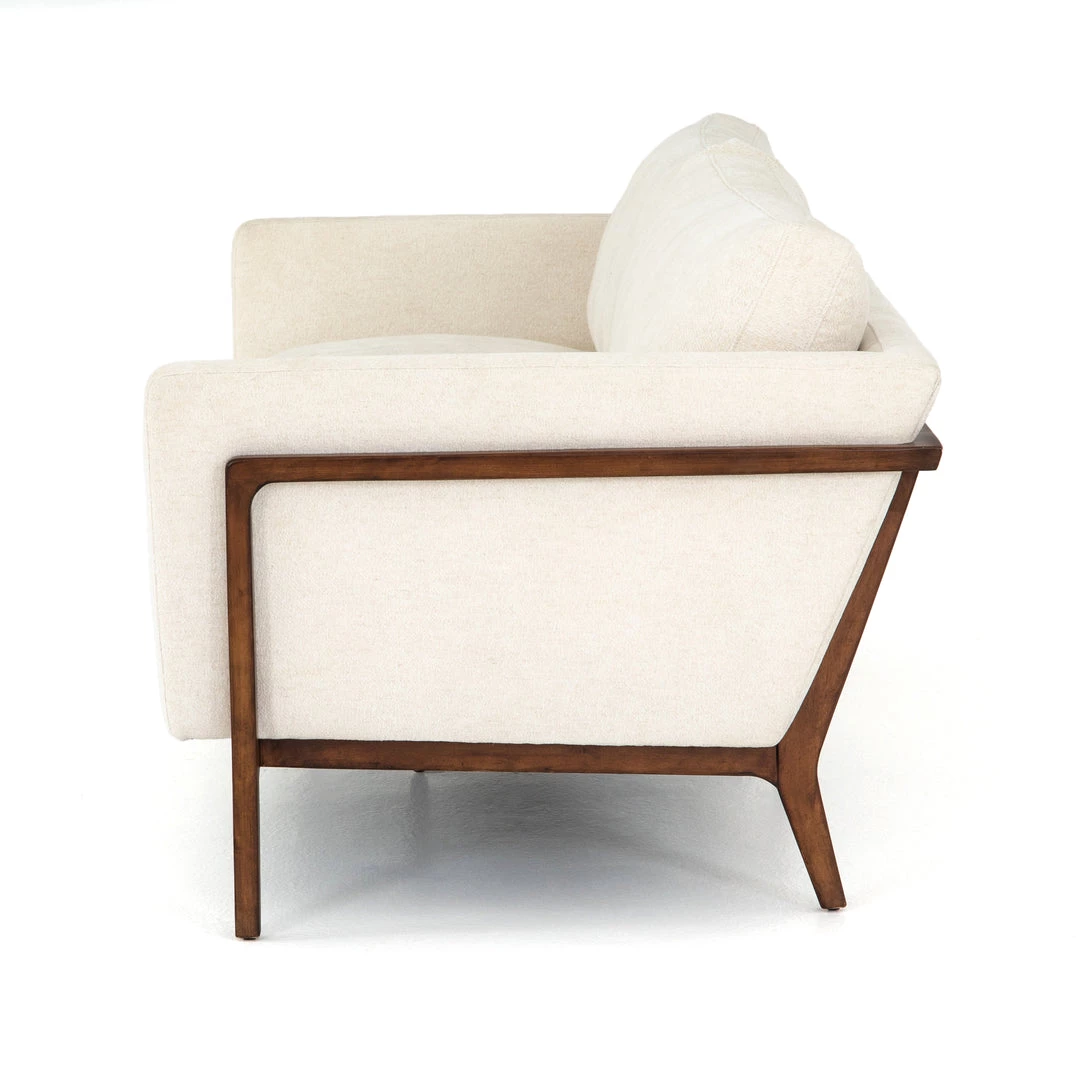 Simple, streamlined beauty from all angles. Pecan-finished birch wood cleanly cradles ivory linen-blend seating, for a sophisticated look with fresh two-tone allure.