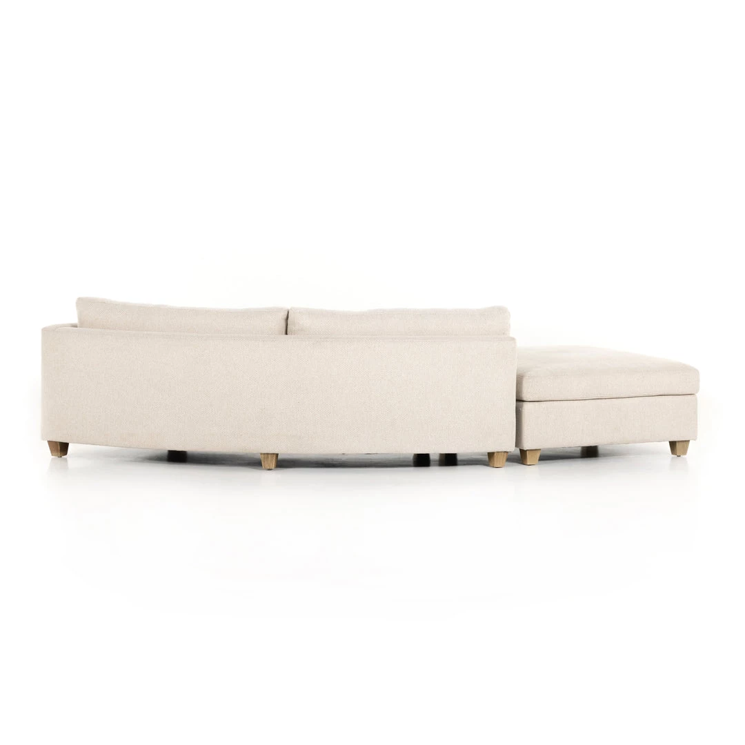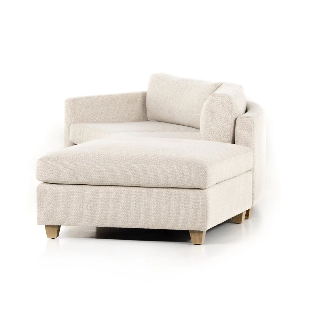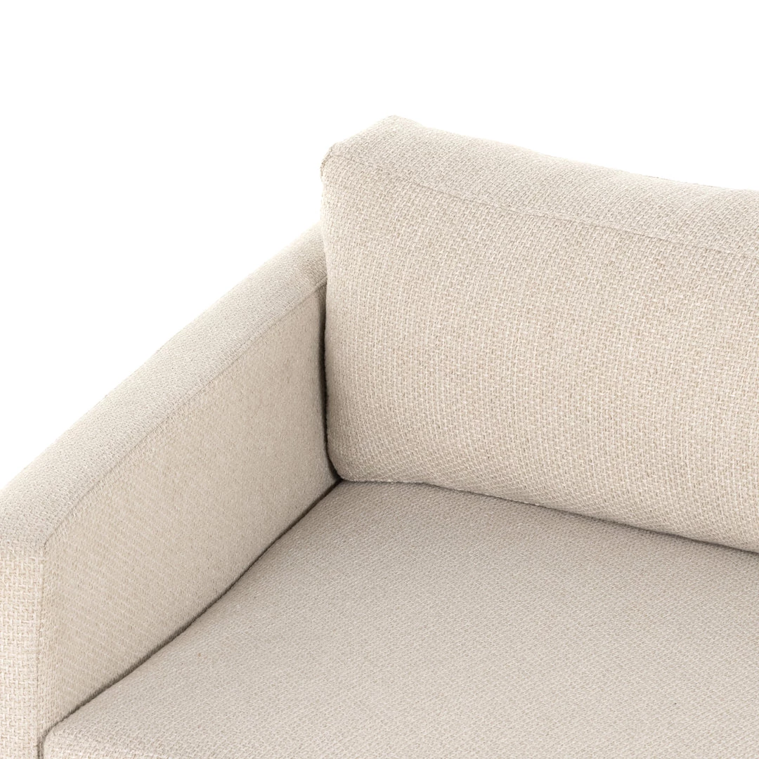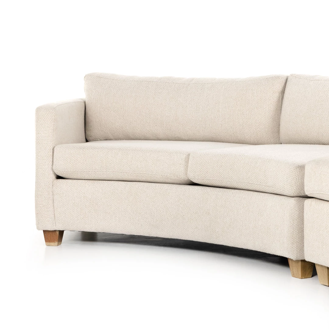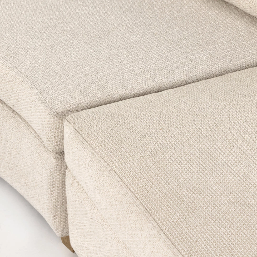 A conversation-conducive crescent shape inspired by nature’s calming curves, thoughtfully upholstered in fabric made from recycled water bottles for luxurious comfort with a sustainable spin.