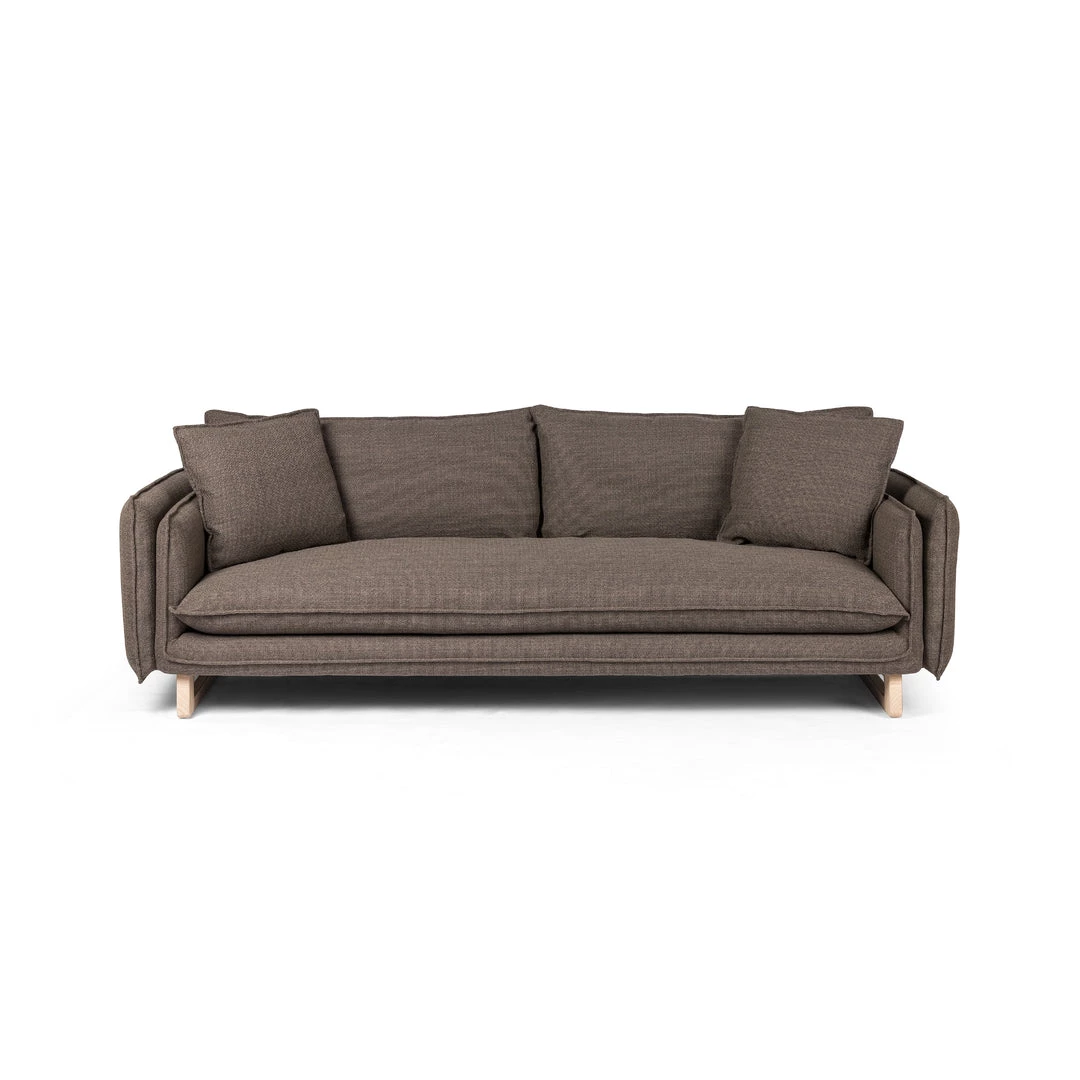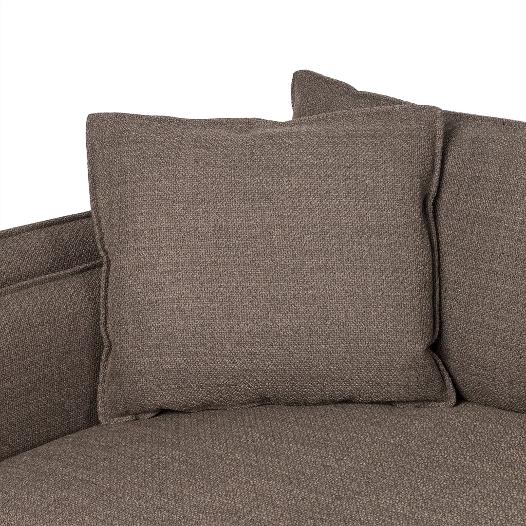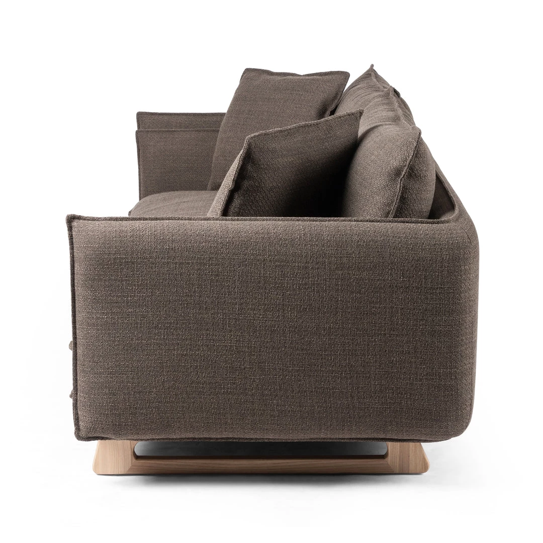 Sink-in comfort meets layers of plush cushioning all around. Knife-edge cushions are upholstered in a family-friendly, liquid-repellent fabric. All grounded with a neutral solid ash base.