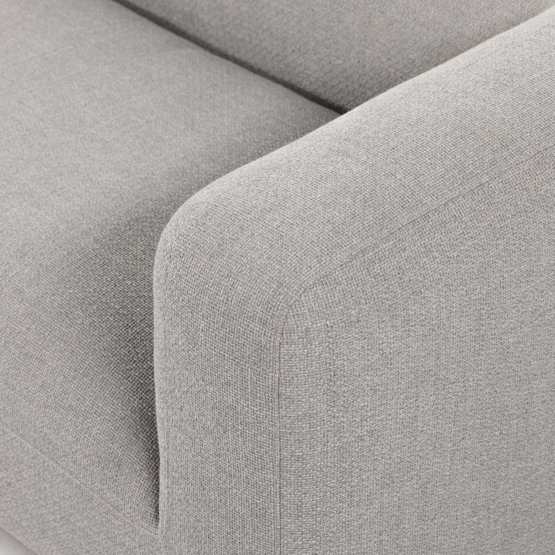 Laid back and pristinely tailored, for the best of both worlds, with high-performance fabric for modern sensibility. Voluminous arms and rounded corners offer a soft look and comfortable sit, while a plinth-style parawood base adds a hint of material contrast.