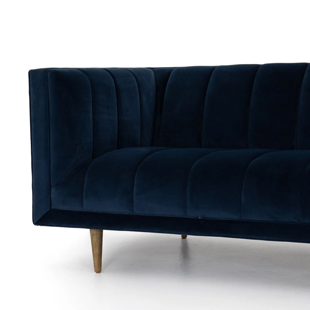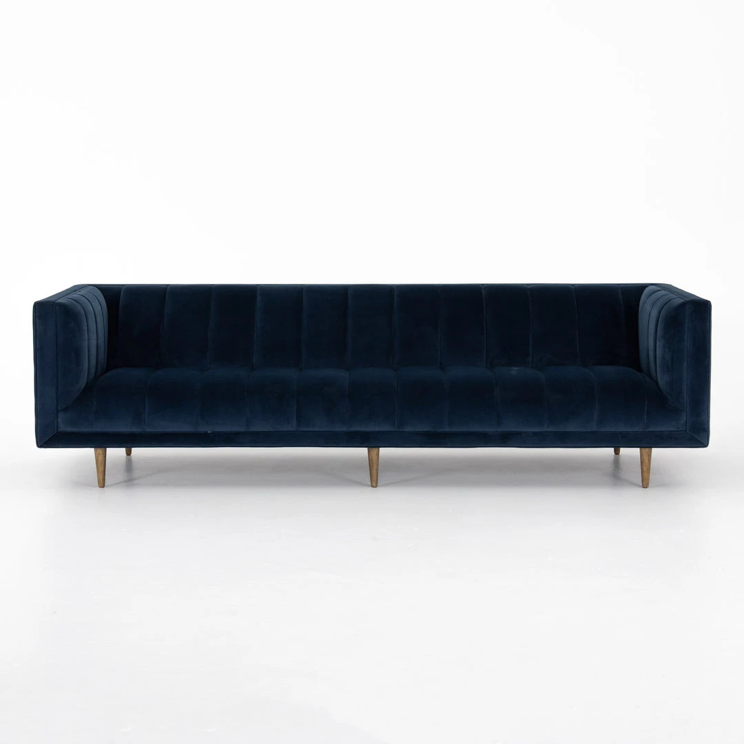 With clean classic lines and a tuxedo silhouette, plush channeling makes this modern-minded sofa equally regal and laid-back. Fixed cushion framing with tapered rubberwood legs round out the whole look.