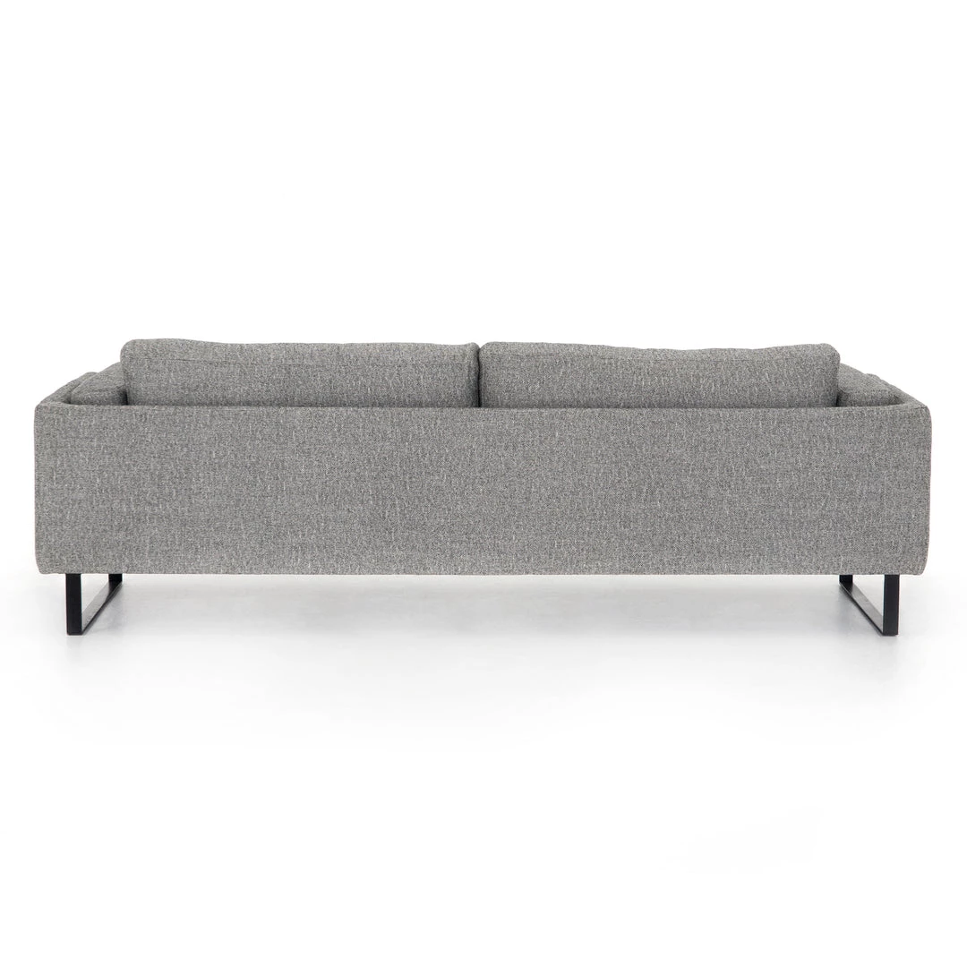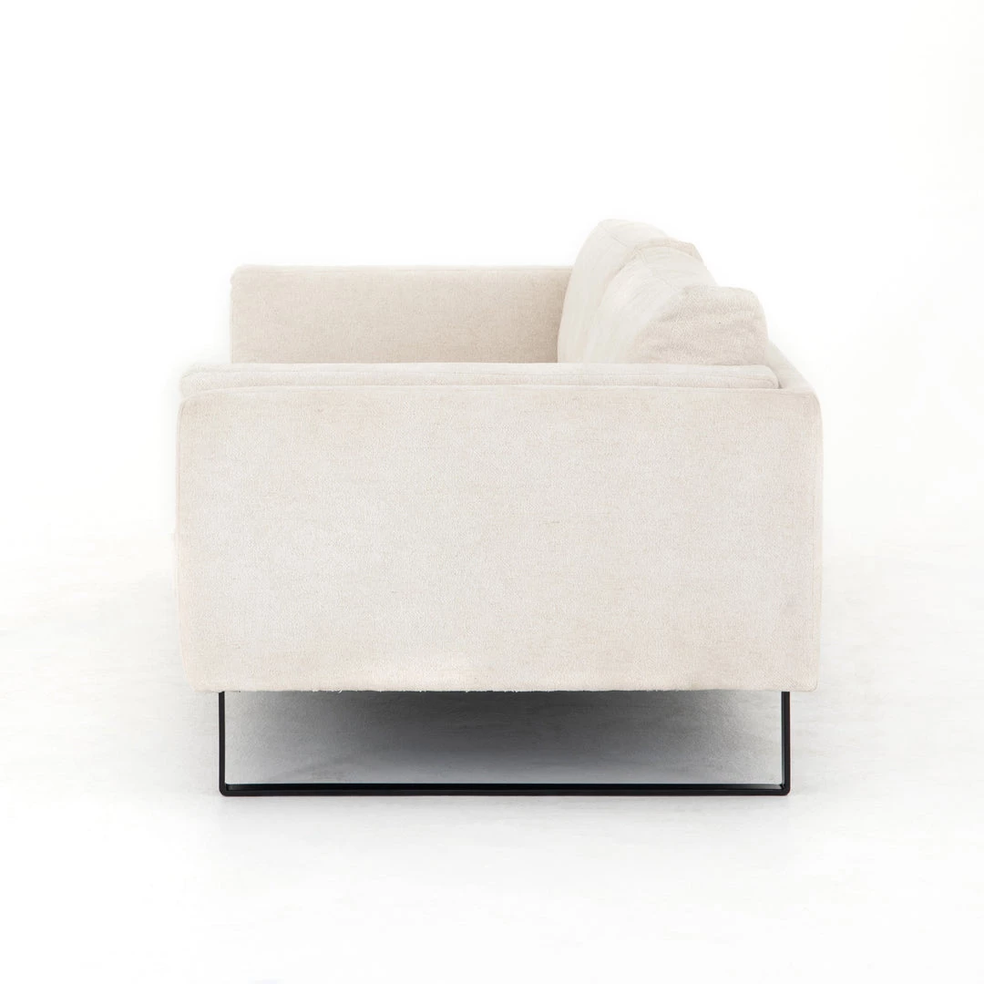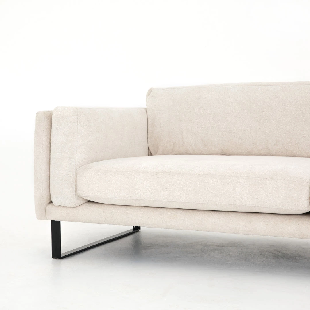 With soft, chenille-like cream upholstery and European-inspired elan, this modern-minded sofa meets luxe style with a sensibly supportive sit. Black-finished ski legs of stainless steel lend a light, airy look.