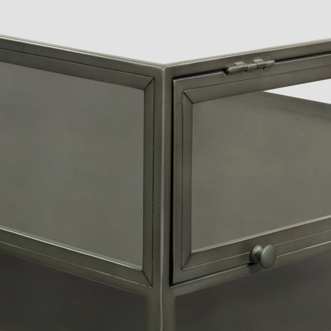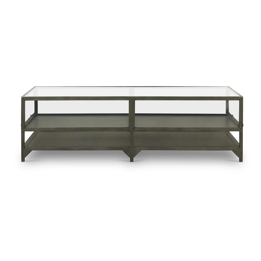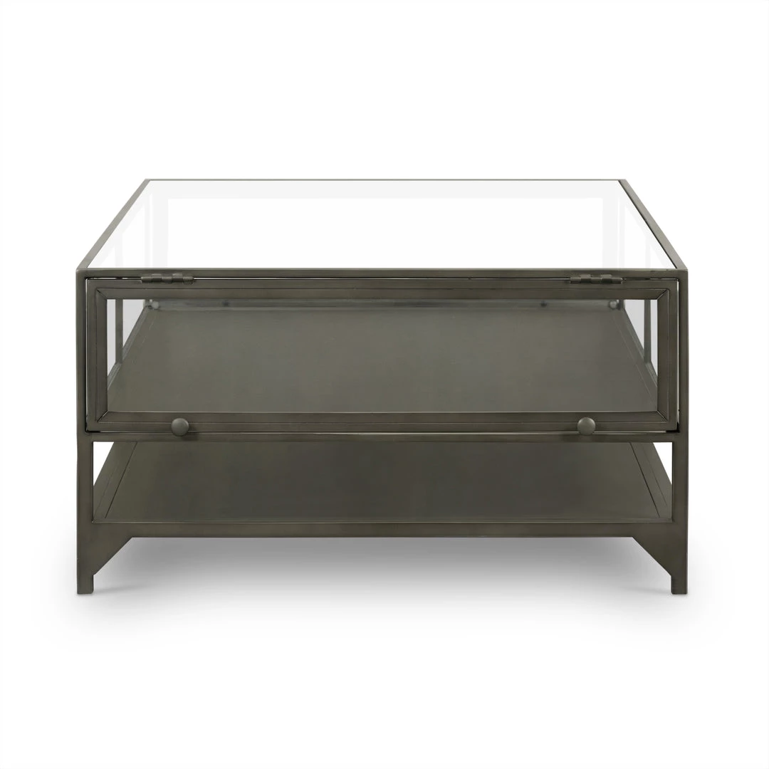 A shadowbox-inspired coffee table gives your inner collector a place to play. Frame prized possessions in a glass enclosure with sleek gunmetal-finished iron framing.