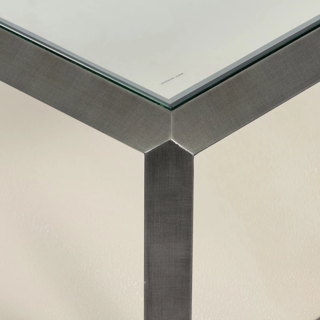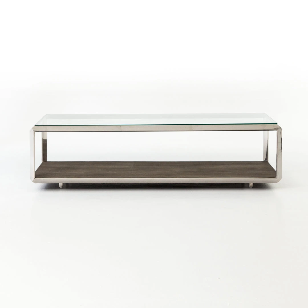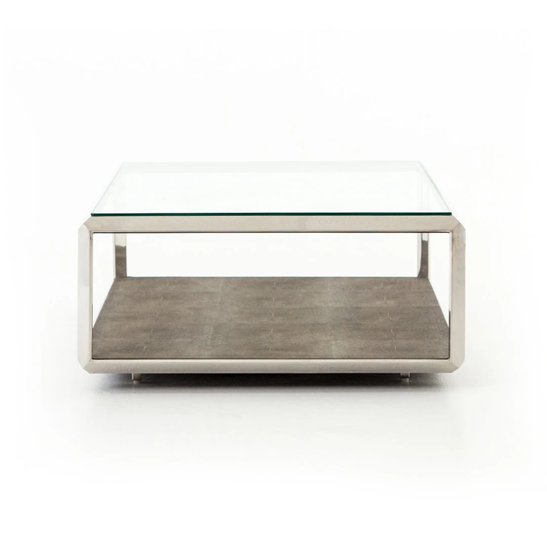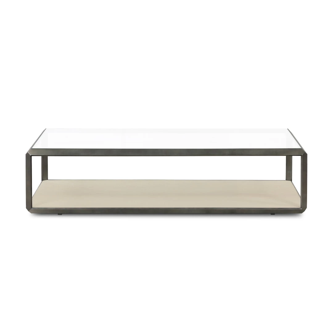 A layer of ivory faux shagreen sets an intriguing textural backdrop for prized possessions. Low-styled with gunmetal-finished iron framing for a fresh, functional twist on the traditional shadowbox.