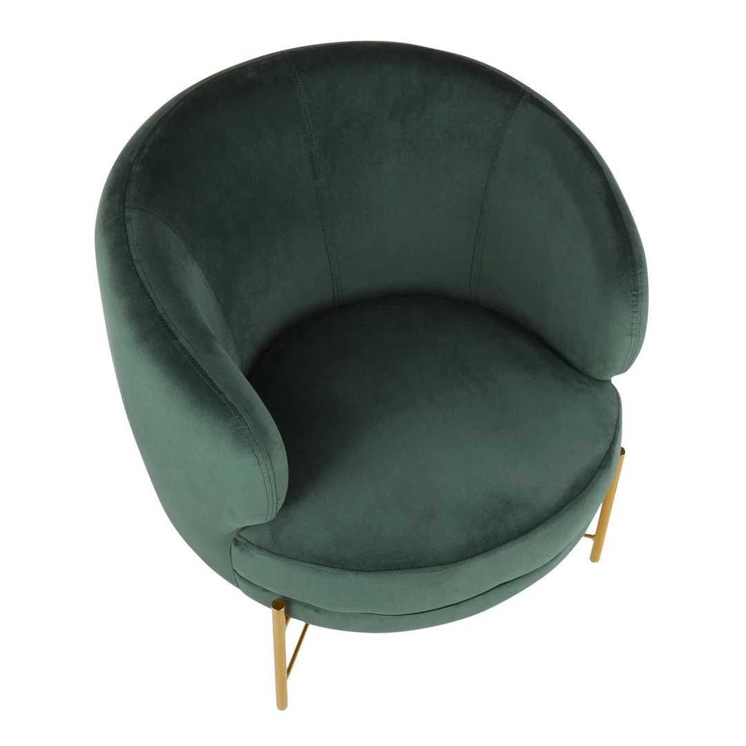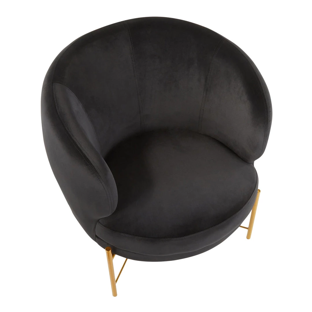 Add a dash of glam to your living space with the Chloe Accent Chair by LumiSource. With a rich velvet upholstered seat and backrest, stylish tufting, and plush padding, the Chloe is accented by a luminous gold metal base. Available in a variety of colors, choose the one that fits your glam area the best!