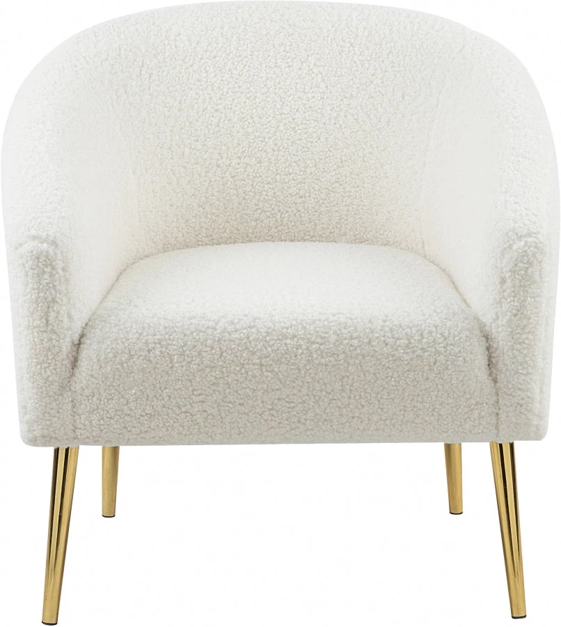 Sit in the lap of luxury when you bring home this Barlow faux fur chair.you’rell thinkyou’reve hit the big time whenyou’rere sitting pretty in this beautiful chair with its soft faux sheepskin fur upholstery. This Barlow chair rests on rich gold metal legs for a burst of contemporary oomph. Settle into the barrel-style chair while you read a good book or just unwind at day’s end.