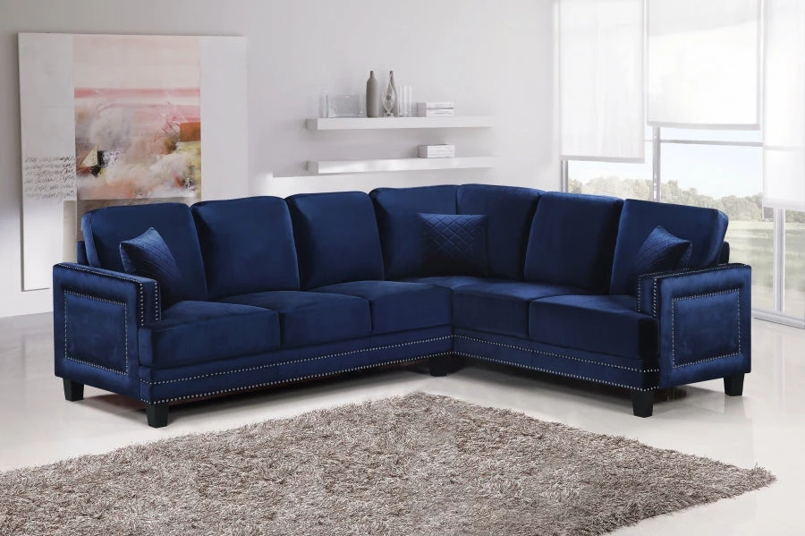 The Ferrara Sectional is an impeccable example of truly memorable, opulent contemporary design. Your Living room will be the height of dignified fashions with top quality materials & construction. The set features a nail head design and is available in multiple colors.