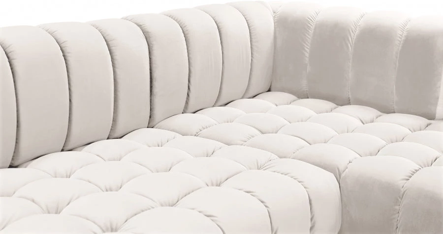 Elegant and eye-catching, the stunning velvet Gwen 3pc. Sectional (3 Boxes) from Meridian Furniture is the perfect addition to any space.
