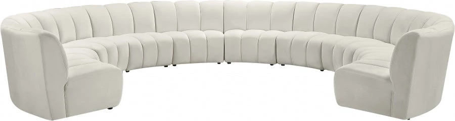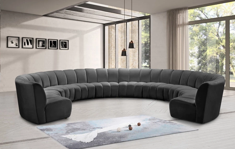 Elegant and eye-catching, the stunning velvet Infinity 10pc. Modular Sectional from Meridian Furniture is the perfect addition to any space.