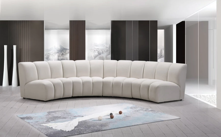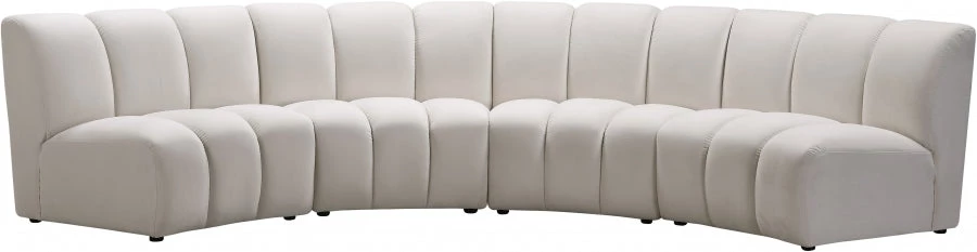 Elegant and eye-catching, the stunning velvet Infinity 4pc. Modular Sectional from Meridian Furniture is the perfect addition to any space.
