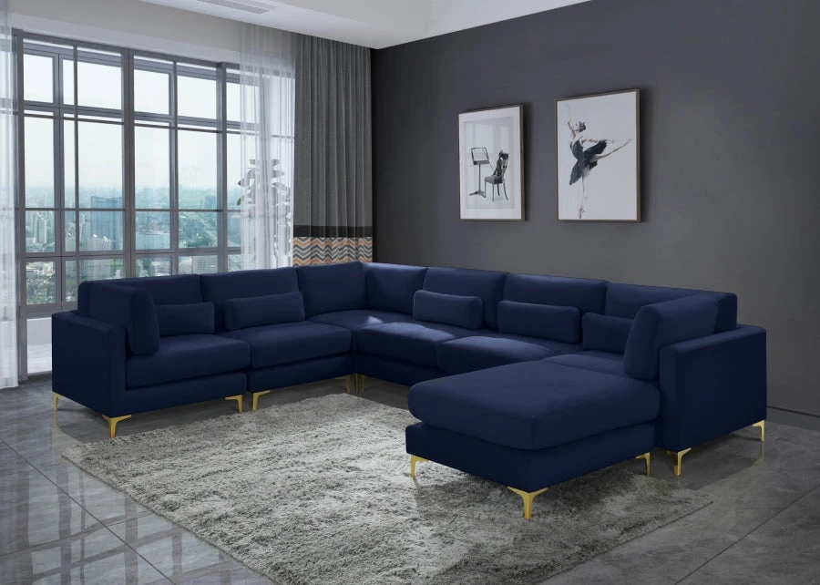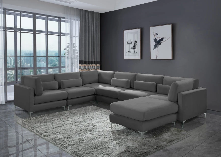 Elegant and eye-catching, the stunning black velvet Julia Modular Sectional (7 Boxes) from Meridian Furniture is the perfect addition to any space.
