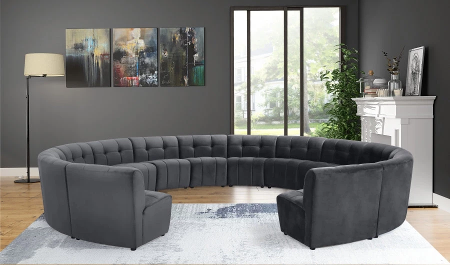 Elegant and eye-catching, the stunning velvet Limitless 14pc. Modular Sectional from Meridian Furniture is the perfect addition to any space.