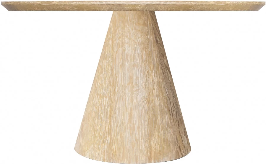 Give your home a rustic look with this Linette white oak dining table. Crafted from solid white oak wood, this table is sturdy enough to serve your dining area for years to come. A cerused brushed white oak finish gives the table a natural look perfect for any down-home living space. Its tapered base provides an elegant and sturdy foundation for its round tabletop, ensuring there is lots of leg space underneath the table.