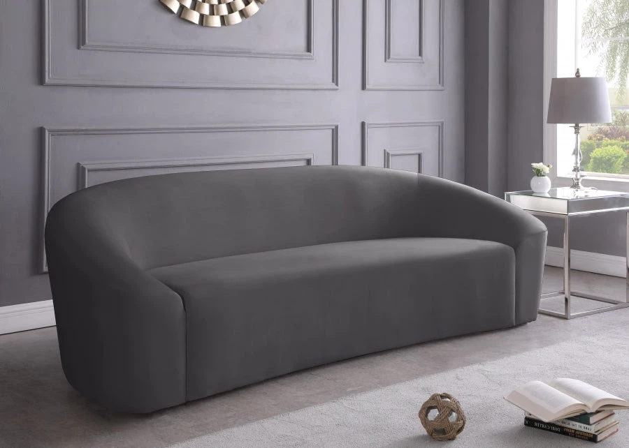 Elegant and eye-catching, the stunning grey velvet Riley Sofa from Meridian Furniture is the perfect addition to any space.