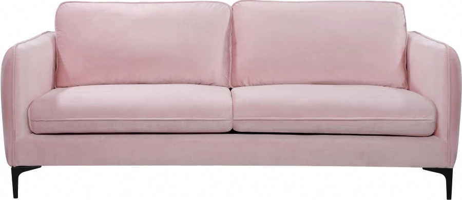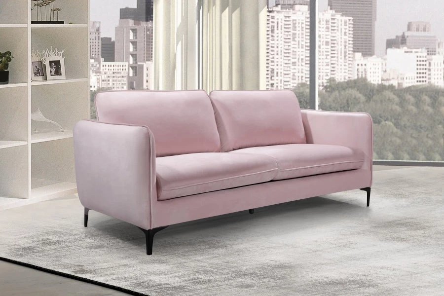 Transform your living space into a chic haven with this stunning Poppy Pink Velvet Sofa from Meridian Furniture. Rich pink velvet upholstery creates a soft, luxurious space for you to curl up with a book or in front of the TV on a rainy day, or just kick back and relax after a long day at work. Its plush back cushion offers ample support for your back while adding to the sofa’s contemporary design, and matte black metal legs pull the piece together, making it a stylish choice for any room.