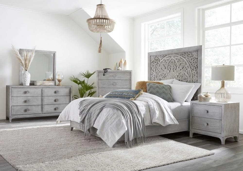 Add a Bohemian style to your bedroom with the globally inspired Boho Chic nightstand. Crisp edges, delicately curved feet and carved drawer pulls complete the look.