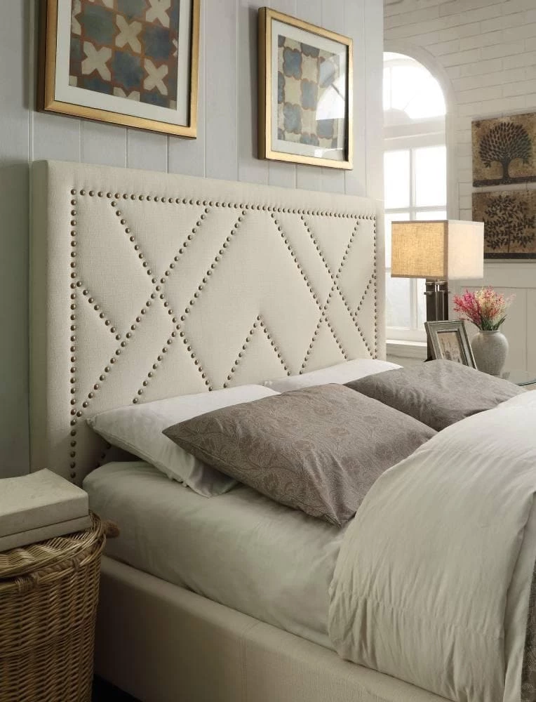 - – Headboard can be used with matching platform bed frame or can be hooked onto a standard metal bed frame.