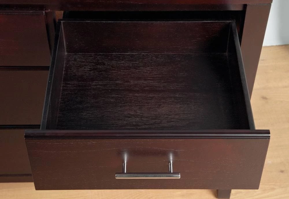 - – Sanded and stained drawer interiors with English dovetail joinery.
