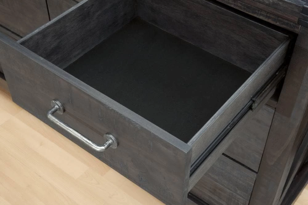 The Yosemite collection recreates the improvised, utilitarian look of early 20th century factory furniture. Crafted entirely from solid wood, this collection utilizes mortise and tenon frames, tongue and groove tops, and frame and panel sides for strength and durability. Roughhewn planks bear the characteristic saw marks, dents, pits, and random knots of logs milled on the steam powered circular and sash saws of the era. Finally, a rustic black pine finish balances transparency and opacity to showcase imperfections inherent in the timber.