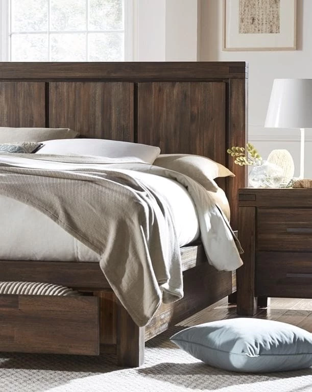 - • Solid Acacia fronts, tops and sides; plywood backs, drawer boxes, and bed slats.