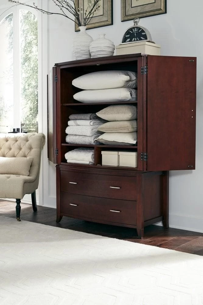 The Brighton collection is expertly crafted from Tropical Mahogany solids and Cherry Veneers and features a refined American finish in a deep, vibrant Cinnamon. When combined with the Brighton wood and sleigh beds, this collection will fill your bedroom with understated splendor and luxury.