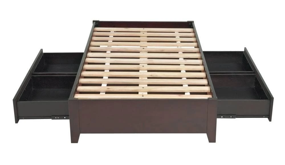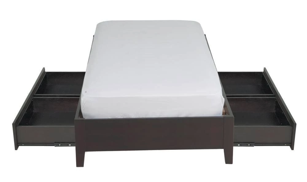 - – Features four storage drawers hidden within bed frame.