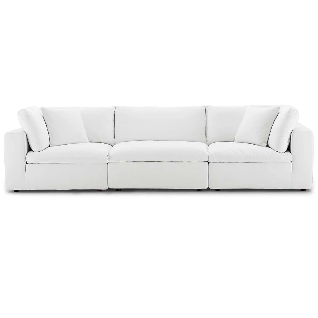 A haven for cozy relaxation, Commix features plush comfort, clean-lined design, and spacious profile, that makes an attractive statement in the modern home. Upholstered in soft polyester and linen fabric, this living room set comes with solid wood construction and cotton and down cushions for a luxurious sink-in feel. Commix comes with generously padded down feather and cotton cushions, and padded foam bases, making this sectional sofa collection perfect for the living room, family room, or game room. Made for sprawling out or curling up, Commix beckons you and guests to sit and stay a while. Includes plastic foot glides.