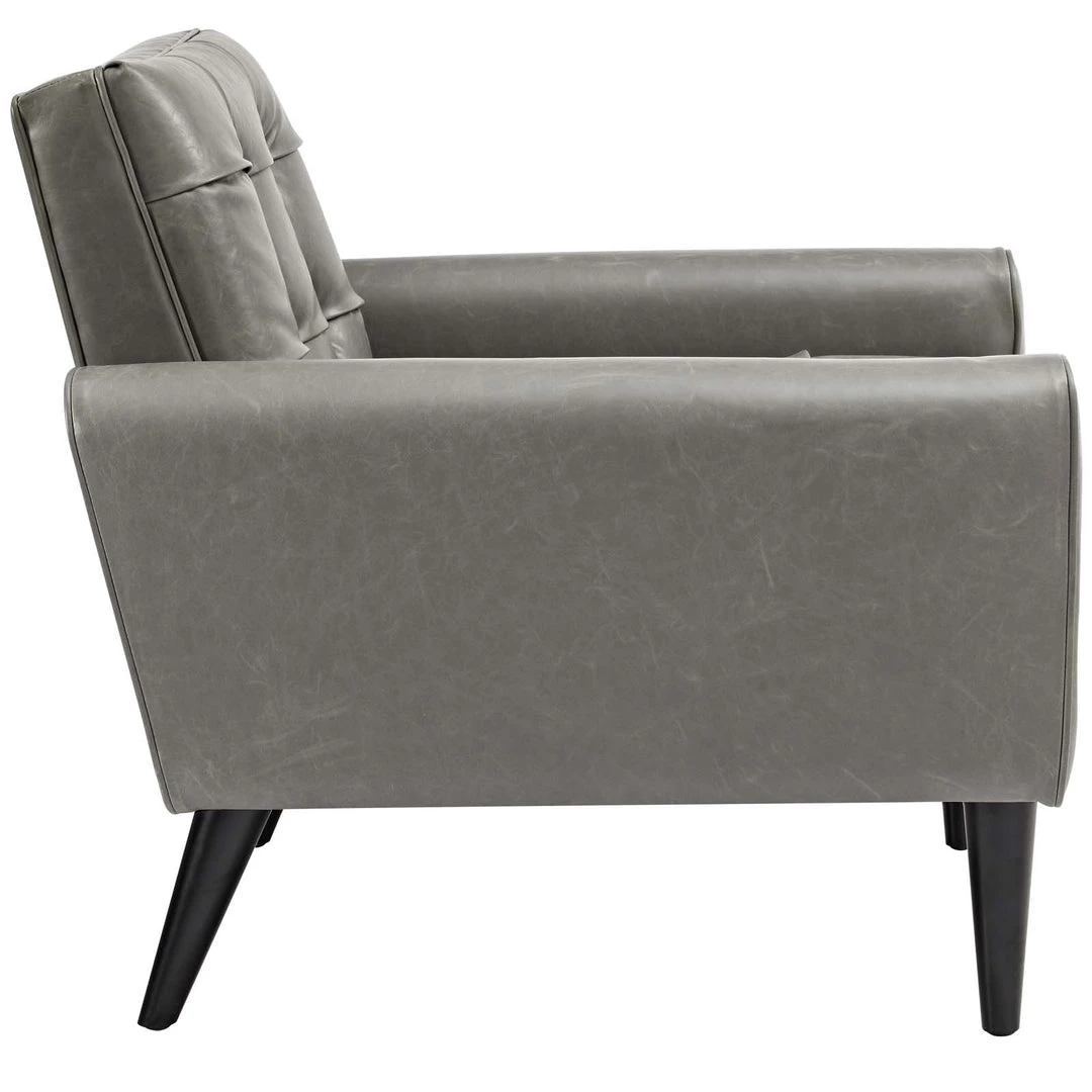 Transform your office with the Delve Arm Chair. Luxuriously tufted buttons adorn the antique Vegan Leather for an exquisite look of exceptional appeal. Featuring gently curved armrests and a fashionably chic shape, Delve comes densely padded in foam with solid wood legs. The perfect addition to the modern office décor today with this exceptional piece. Matching armchair also available. Comes with non-marking foot glides.