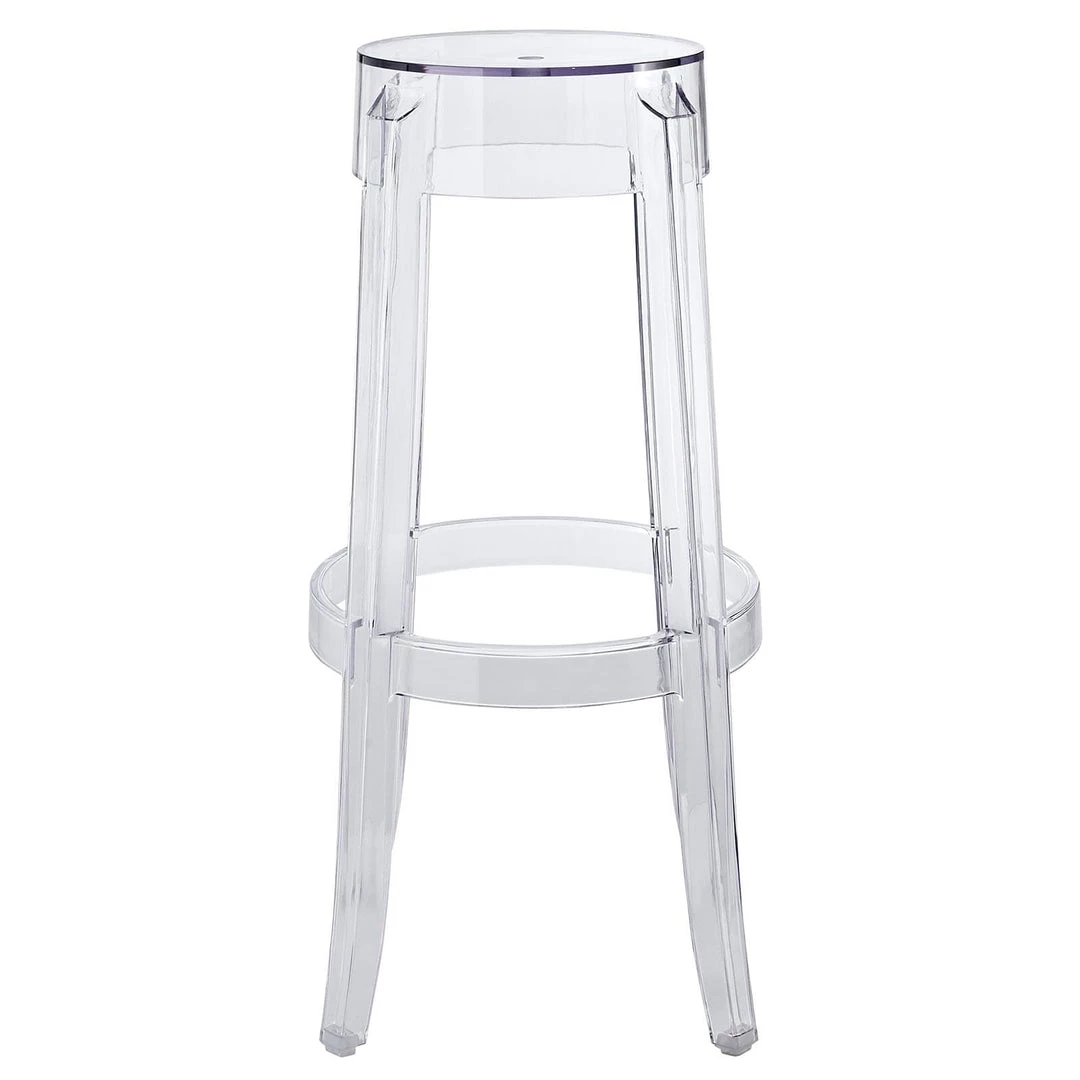 The silhouette-inspired design of this bar stool is a sure attention grabber that coordinates with any color scheme. Constructed from transparent acrylic, this stunner includes non-marking feet that both help protects sensitive floors and stabilize the stool.